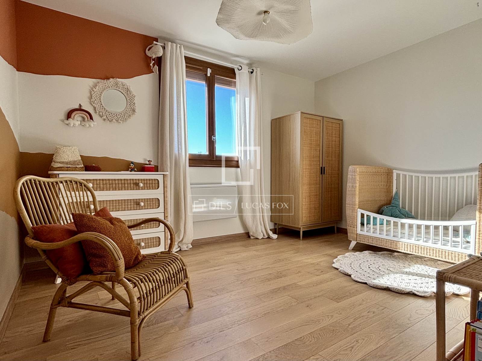 Utanför hittar du en anlagd trädgård med en balinesisk stenpool som kan värmas upp eller kylas ner efter behov, en boulebana och en härlig terrass skyddad av en pergola. Trädgården har också ett automatiskt bevattningssystem och en 5000L regnvattentank. Flera parkeringsplatser och ett 21m² stort garage med laddningsmöjligheter för elbilar kompletterar fastigheten. Huset är fördelat på två våningar.