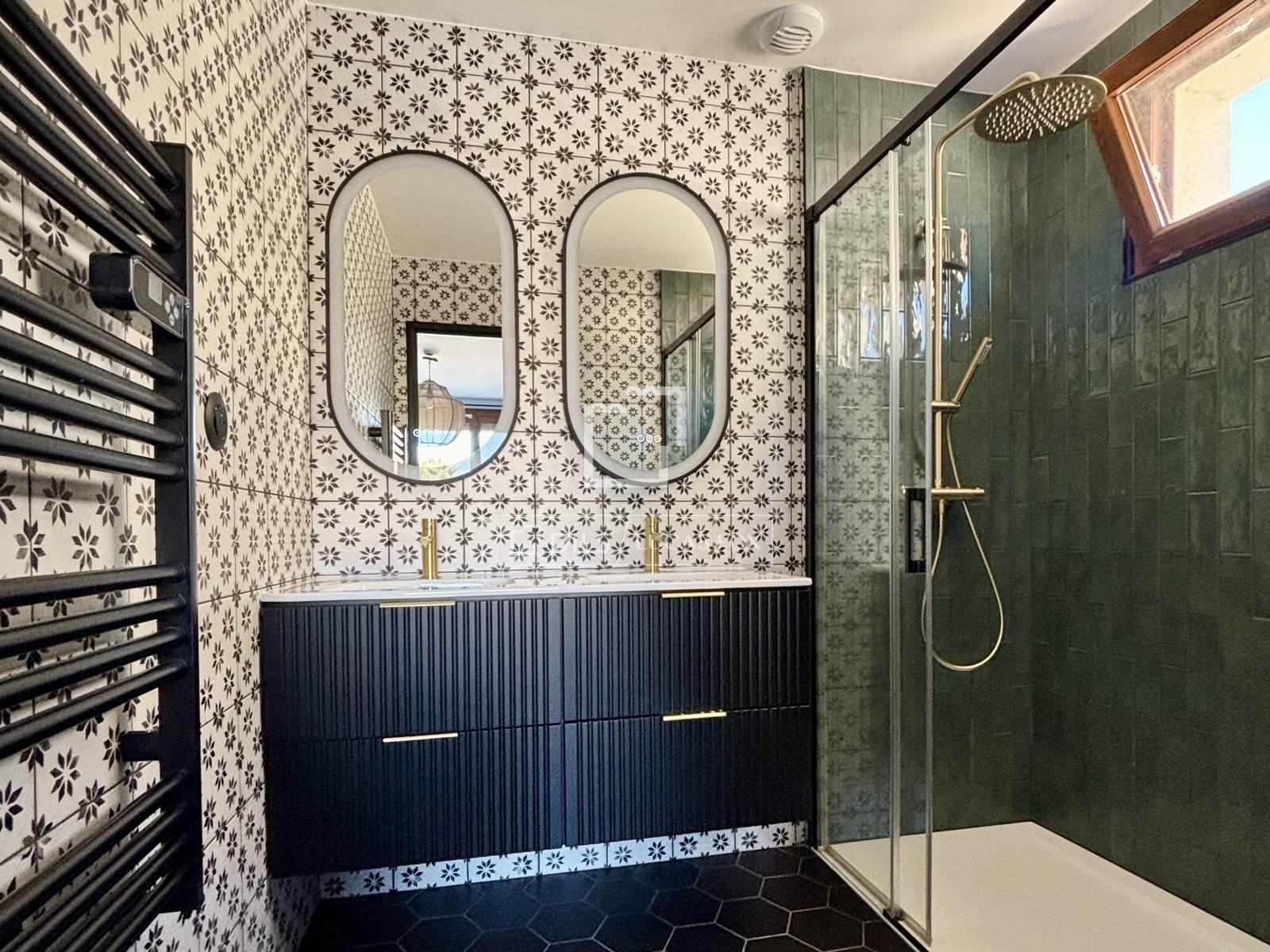 Genom hela huset märker man den särskilda uppmärksamhet som ägnats åt materialvalet: ekparkettgolv, Versailles-kakel (1x1-format)... Ytbehandlingarna är både snygga och estetiska.