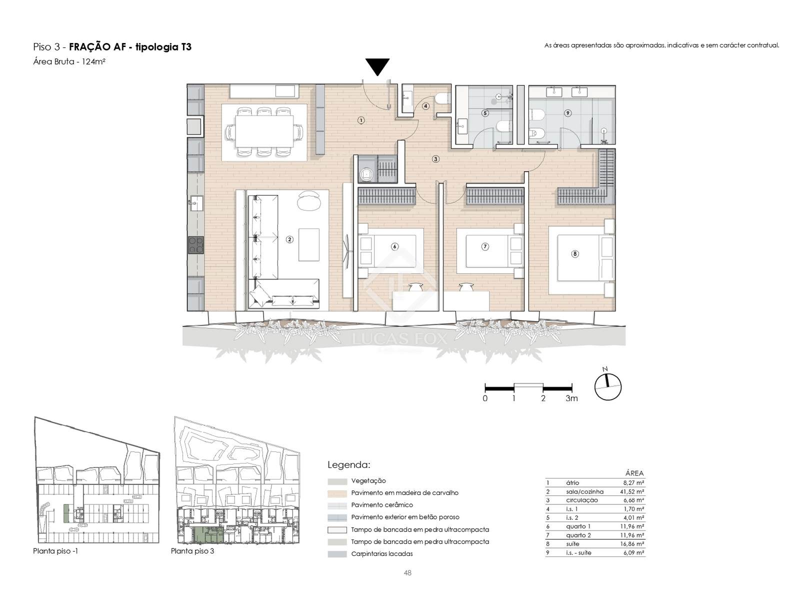 Ny lägenhet med 3 sovrum, med 124 m2 privat bruttoyta, belägen i en privat och exklusiv bostadsrätt, nära Jardim de Arca d'Água.