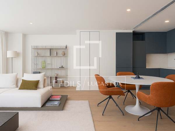 Detta hem har utformats med noggrann uppmärksamhet på detaljer och ståtar med en modern estetik och exceptionell funktionell design. Denna takvåning ligger på översta våningen i den första byggnaden och erbjuder 98 m² boyta och har en fantastisk privat takterrass på 49 m², perfekt för att njuta av stunder utomhus med exceptionell utsikt.