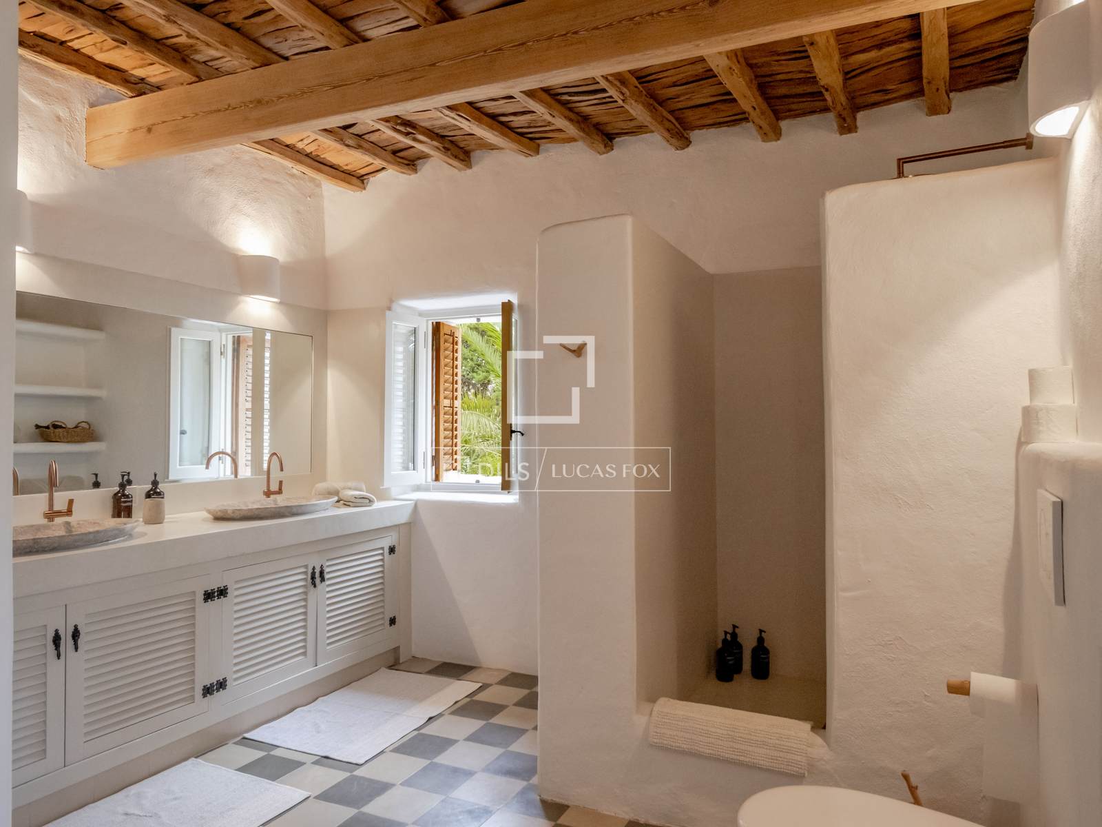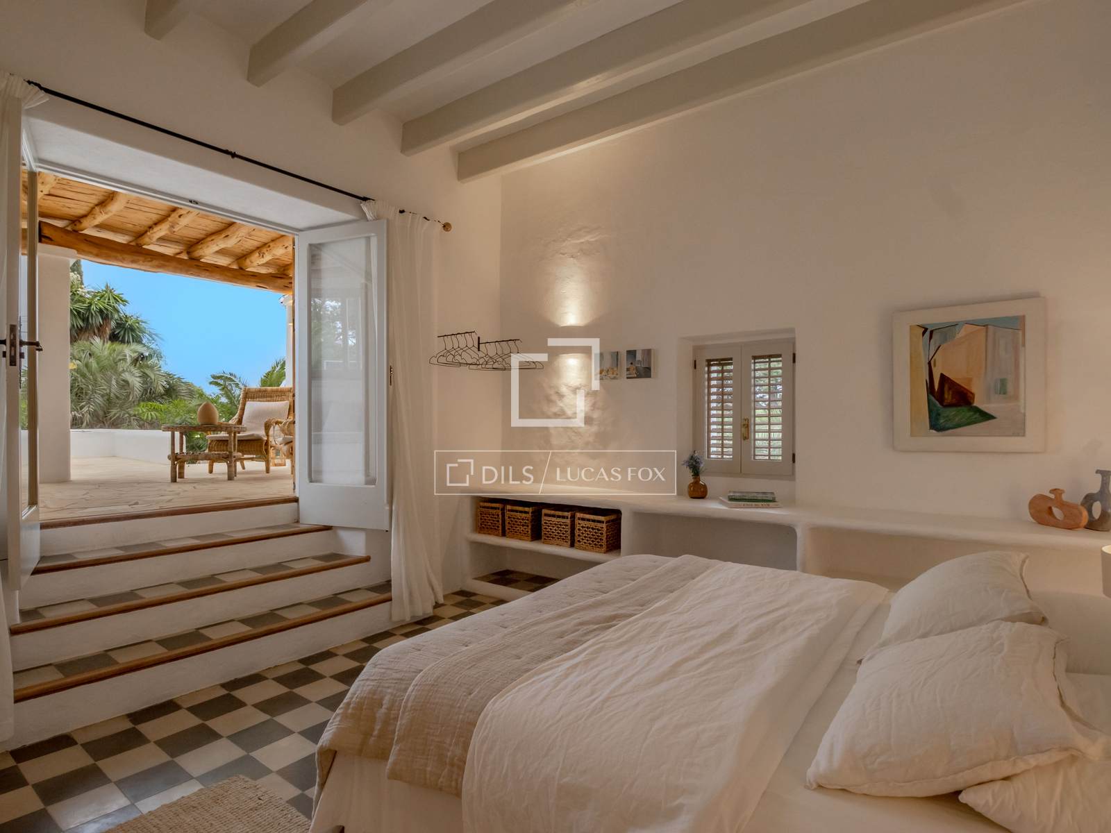 Exteriören på denna utsökta fastighet är omgiven av fantastiska trädgårdar och ett öppet landskap som harmoniserar med den ursprungliga fincans historiska arkitektur. En lugn köksträdgård och parkliknande trädgård ger gott om möjligheter till utomhusaktiviteter för att underhålla vuxna, barn och eventuella husdjur. Fastigheten har också en 60 m2 stor pool med en intilliggande solterrass, förutom flera uteplatser, perfekta för att njuta av medelhavssolen eller koppla av i skuggan. Utomhusområdena täcker imponerande 115 m2 inbjudande terrasser. Ett automatiskt bevattningssystem håller vegetationen väl återfuktad och en perfekt planerad ljusdesign förstärker skönheten i utomhusområdena. Tillgång till fastigheten sker till stor del via en asfalterad väg, med de sista 400 metrarna på en naturskön sandväg. Ingången till fastigheten sker genom en elektrisk grind, vilket garanterar både avskildhet och säkerhet. Det finns gott om parkeringsplatser på plats, med parkeringsplats för upp till fem fordon. Denna finca erbjuder en perfekt blandning av balearisk autenticitet, bohemisk chic charm och modern bekvämlighet, allt i närheten av öns populäraste sevärdheter.