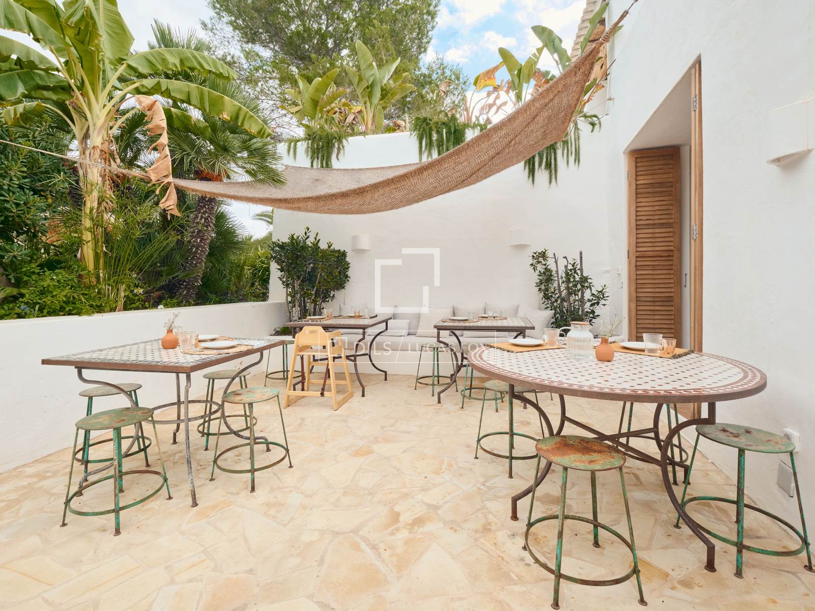 Ibiza stad kan nås på cirka 15 minuter, medan Santa Eulalia ligger cirka 20 minuter bort.