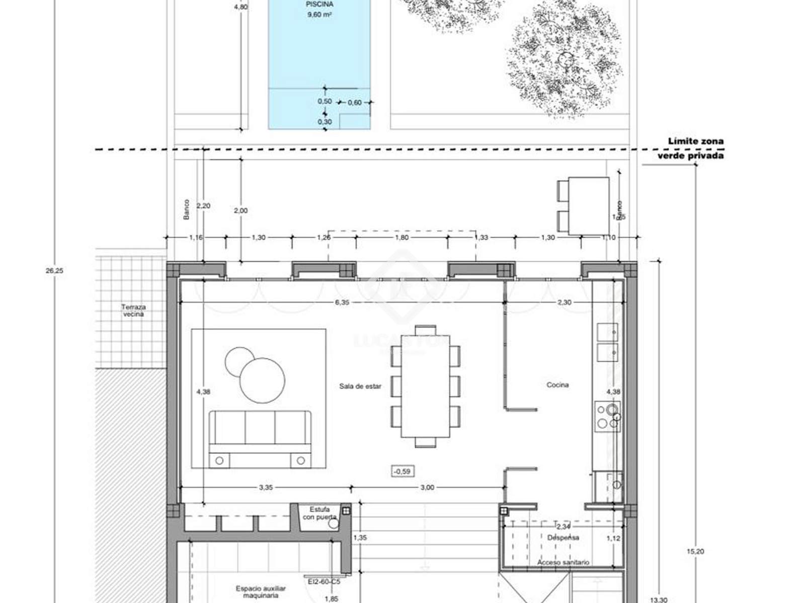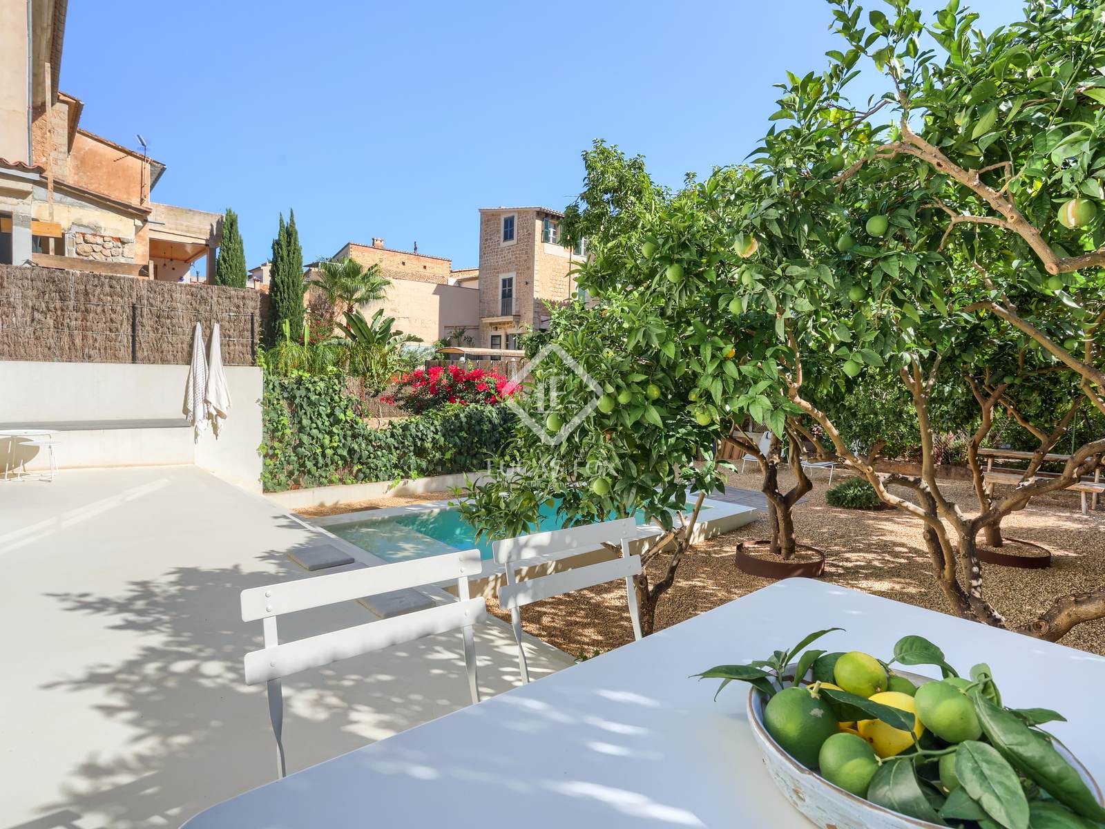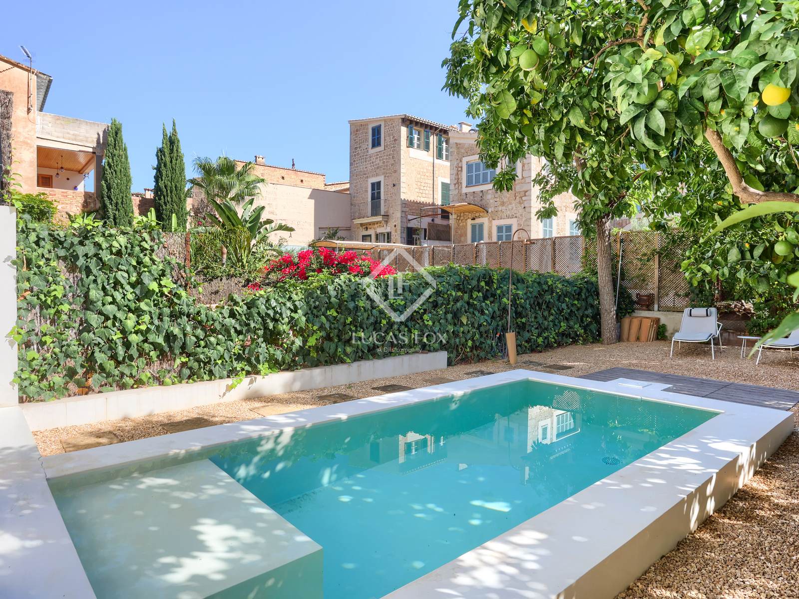 Detta nybyggda radhus i Sóller blandar arv med modern design. Höjdpunkterna inkluderar ett privat garage, en lugn pool, premiumfinish, golvvärme och en vacker trädgård.
