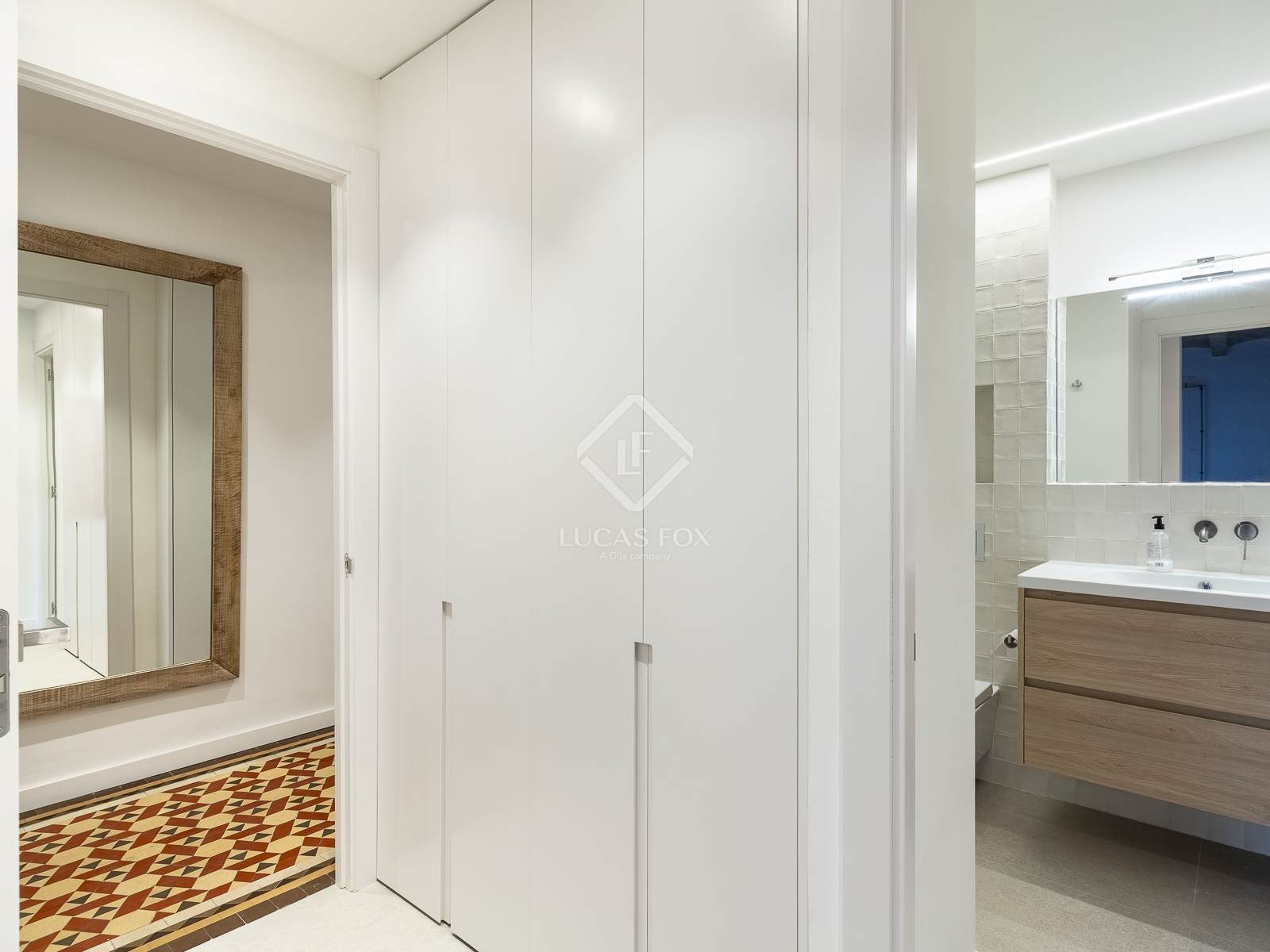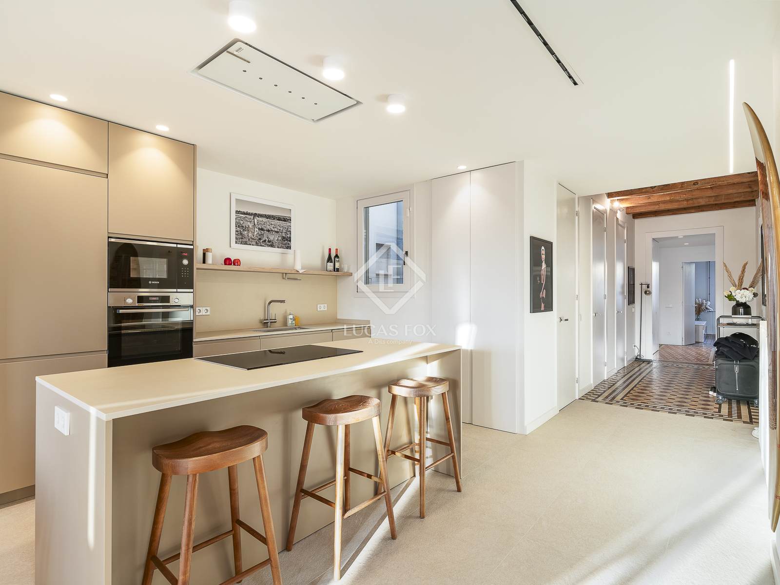 Vid inträdet kommer du att slås av kvaliteten på ytbehandlingarna och noggrannheten i varje utrymme. Renoveringen, som utförts med högkvalitativa material, inkluderar originalgolv med polerade och restaurerade hydrauliska klinkers, kombinerat med eleganta mikrocementytor, samt katalanska välvda tak och restaurerade originalsnickerier som ger en touch av unik charm.
