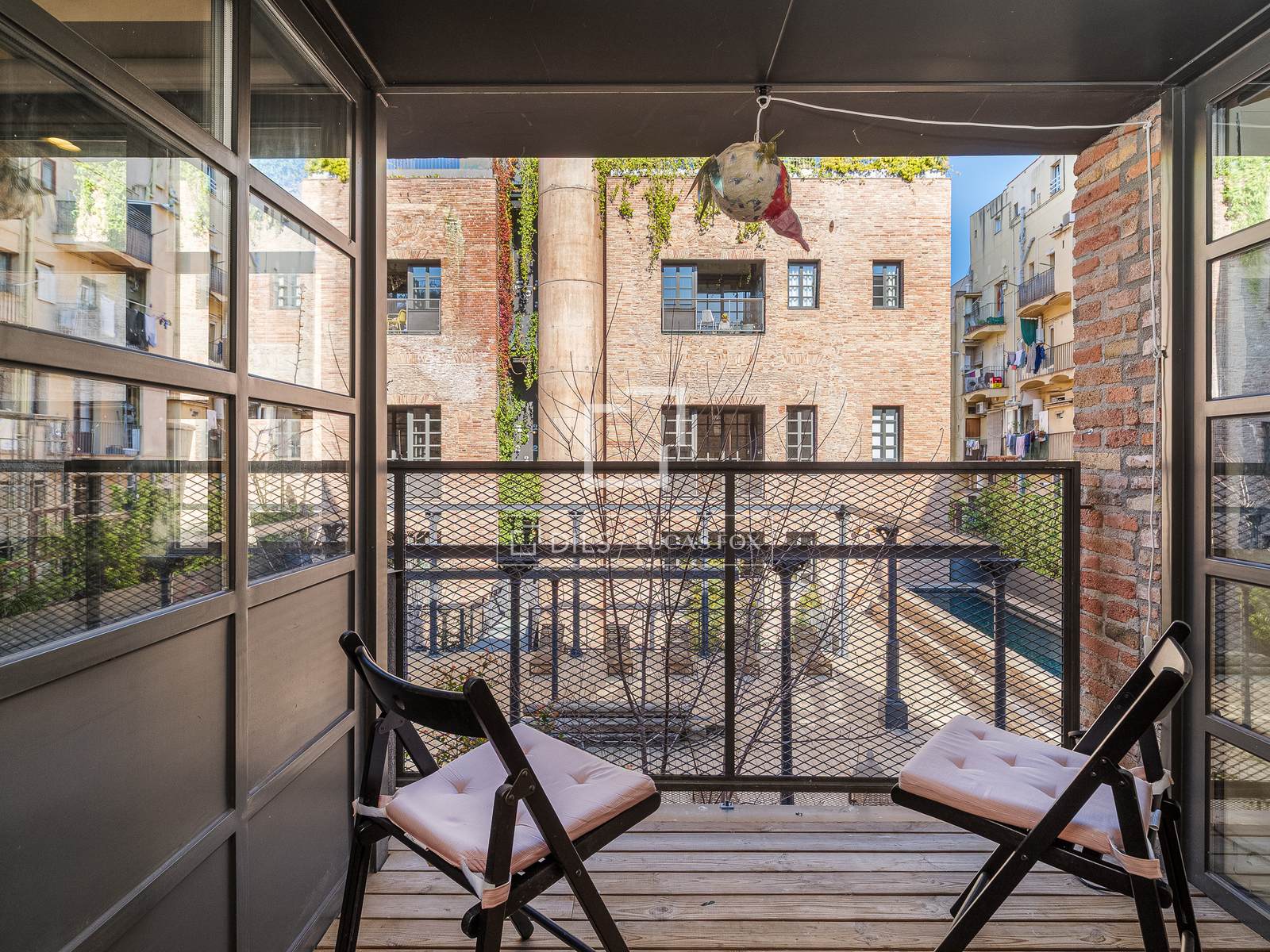 Vi presenterar denna exklusiva lägenhet belägen i en före detta textilfabrik från 1930-talet, varsamt renoverad för att skapa moderna loftlägenheter i industriell stil. Många originalelement har bevarats, kombinerat med moderna detaljer och fyllt utrymmena med naturligt ljus tack vare de stora fönstren. Komplexet erbjuder rymliga gemensamma utrymmen: en pool, sällskapsrum, terrasser och trädgårdar, vilket skapar en unik bostadsmiljö i hjärtat av Barcelonas gamla stadsdel.