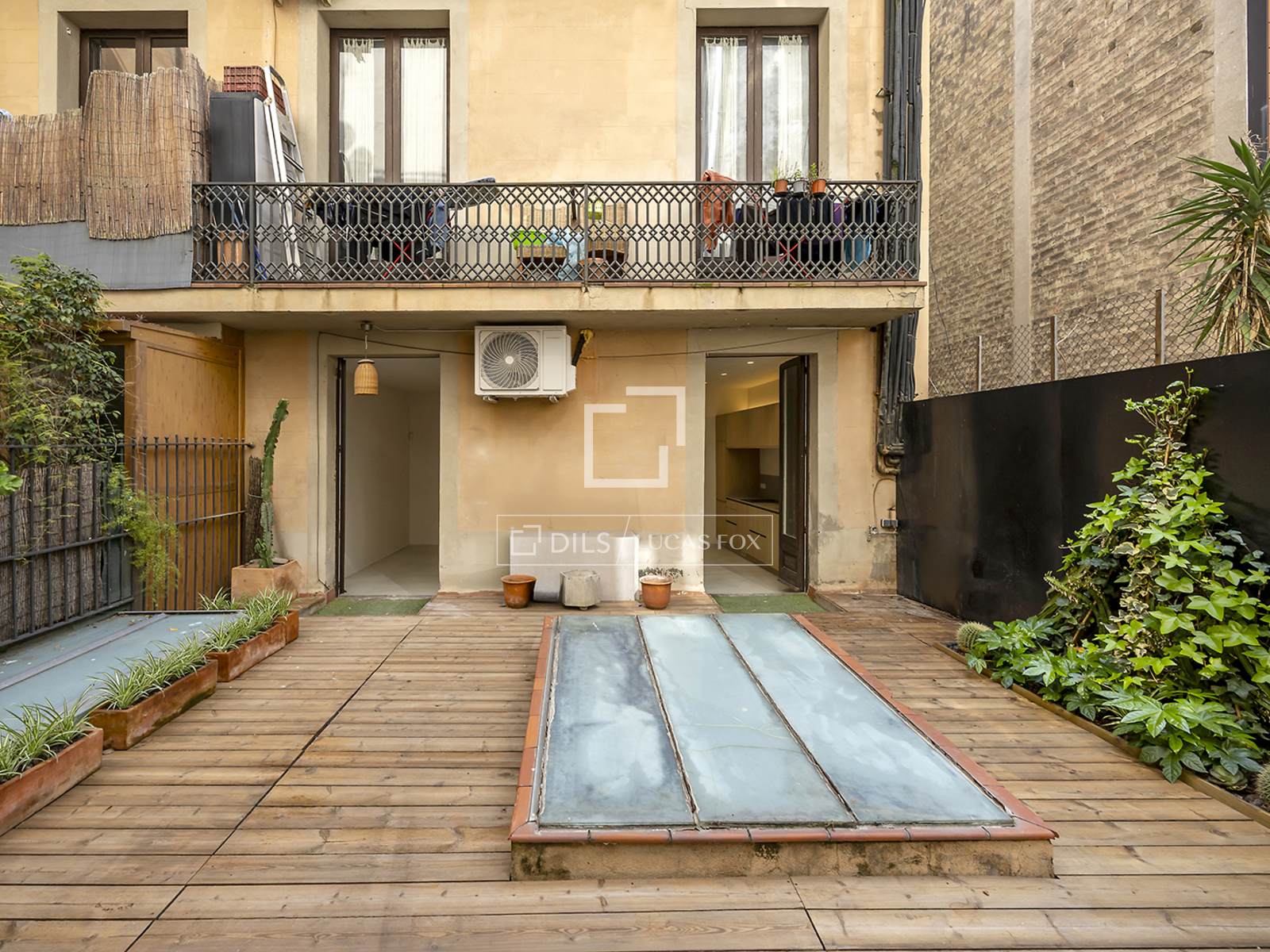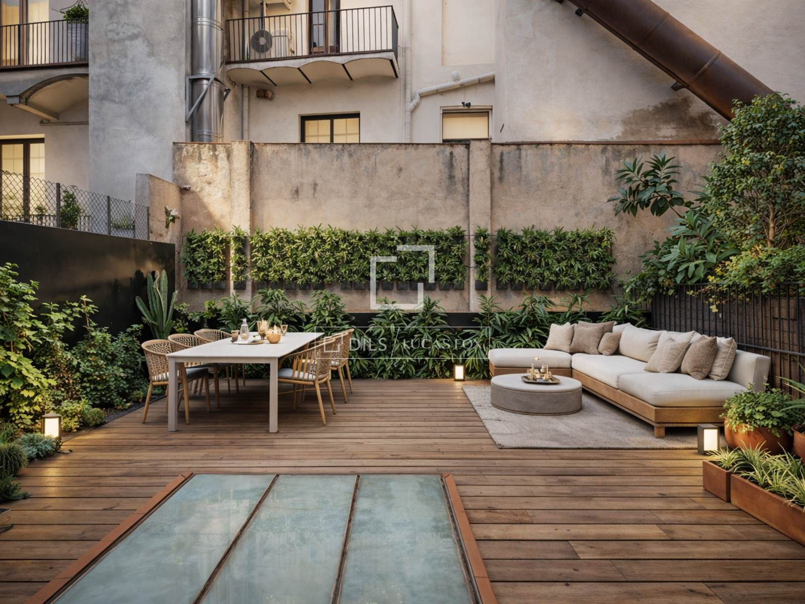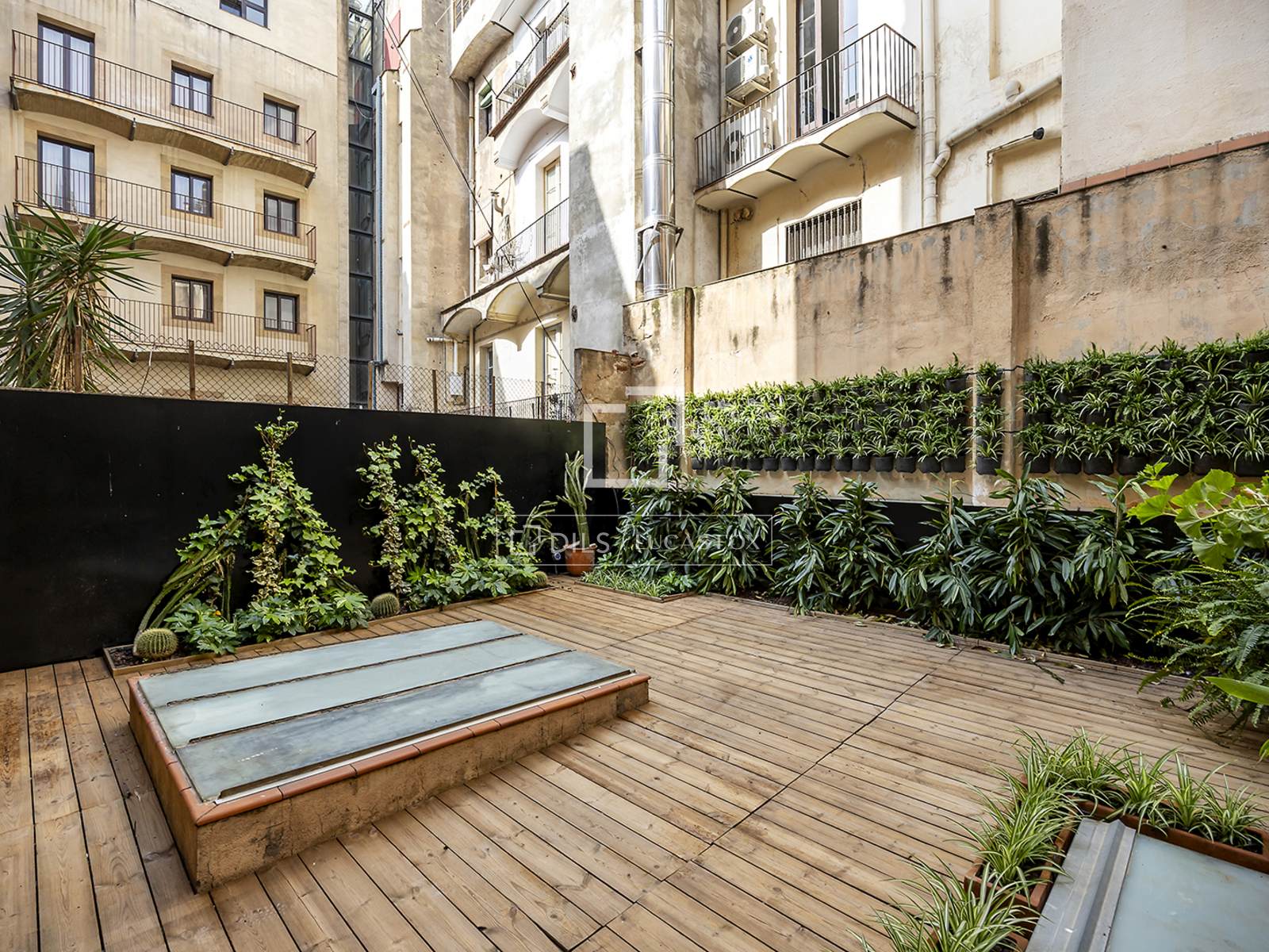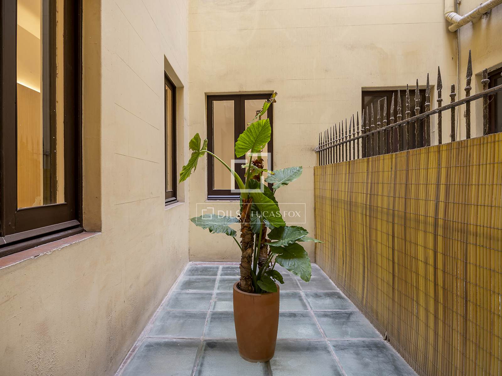 Denna verkligt unika lägenhet erbjuder tre rymliga sovrum och två eleganta badrum, omsorgsfullt utformade för att kombinera komfort och stil. Köket i öppen planlösning ansluter sömlöst till vardagsrummet och matsalen, som alla har direkt tillgång till en imponerande privat terrass på 62 m² – ytterligare förstärkt av två extra privata uteplatser – vilket skapar en sällsynt urban oas i hjärtat av Barcelona.