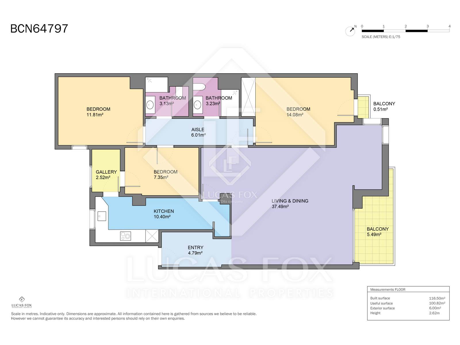 Denna fastighet är byggd på 135 m² och består av 3 sovrum med dubbelsäng, 2 badrum, ett fullt utrustat kök och ett vardagsrum med matplats och balkong. Helt ny och totalrenoverad, inflyttningsklar.