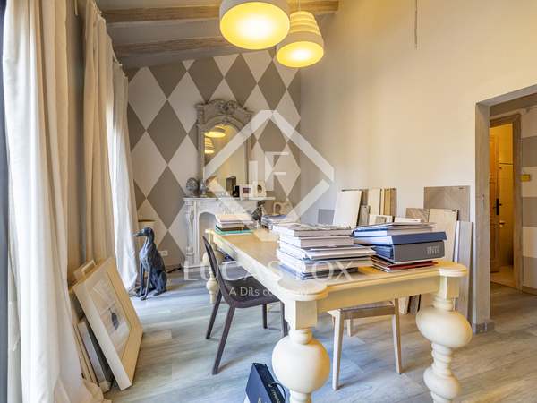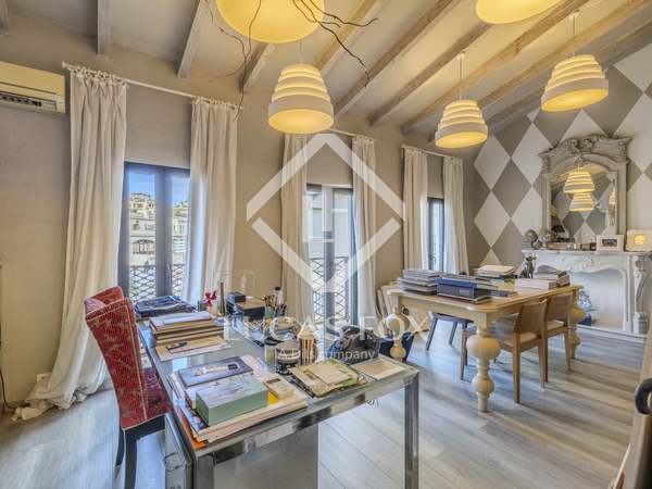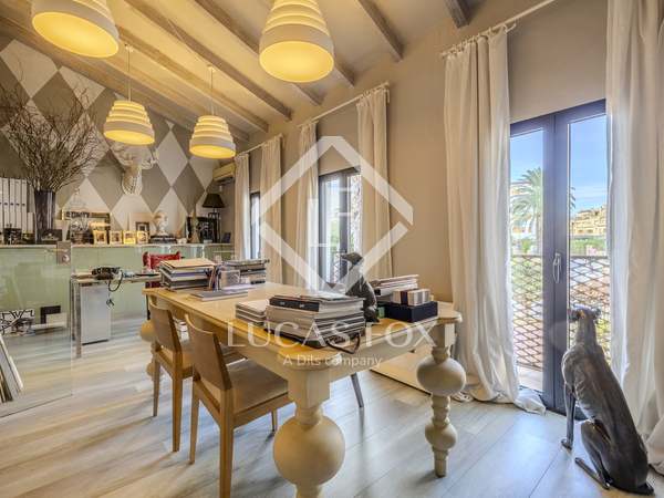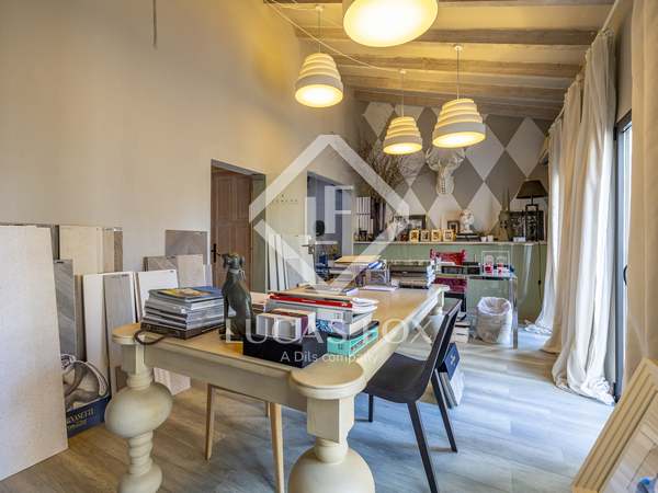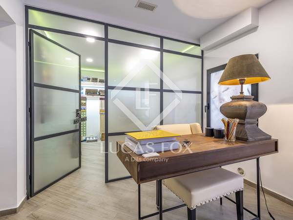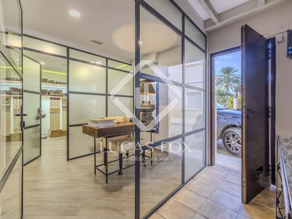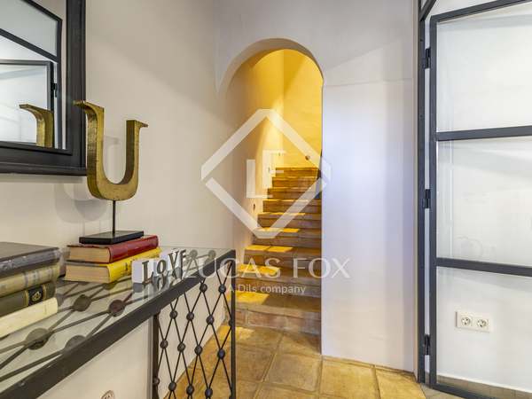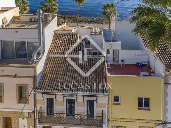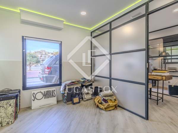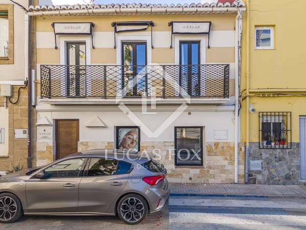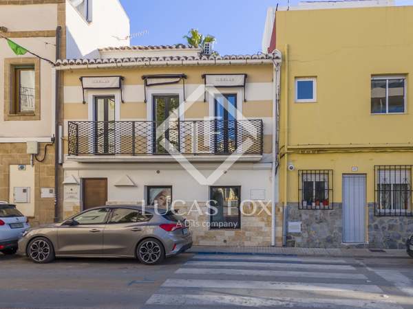Detta radhus ligger i utkanten av Jáveas historiska centrum, som har behållit sin medeltida känsla än i dag. Detta skapar ett unikt nätverk av smala gator med vita fasader som ser söderut och blomdekorationer att strosa igenom. Du hittar också massor av mysiga restauranger och pittoreska butiker. Alla tjänster, såsom stormarknader, vårdcentraler, skolor, restauranger etc., ligger också inom gångavstånd. Huset består av 4 våningar. Bottenvåningen används som kommersiellt kontor och har en separat ingång. Den första våningen består av ett stort vardagsrum/matsal med balkong, ett kök, två dubbelrum, ett med eget badrum och ett separat badrum. Det finns också en täckt terrass för mysiga måltider utomhus. På andra våningen hittar vi samma planlösning igen. Här finns ett andra vardagsrum/matsal, ett kök, två dubbelrum, ett av dem med eget badrum och ett separat badrum. Tredje våningen består av ett stort rum som skulle kunna användas som ett 5:e sovrum, kontor, yogastudio, gym, etc. Det finns också ett separat badrum med toalett och dusch. Den tredje våningen leder till den rymliga takterrassen, som erbjuder vacker utsikt över Montgó, Jáveas historiska centrum och havet. Det finns också utsikt över Montgó från alla sovrum. Dessutom behöver du aldrig leta efter parkering i centrum eftersom fastigheten har ett enormt garage som rymmer upp till 4 bilar. Huset har oberoende el- och vattenförsörjning för varje våning, vilket gör att rummen kan delas upp i två separata våningar.