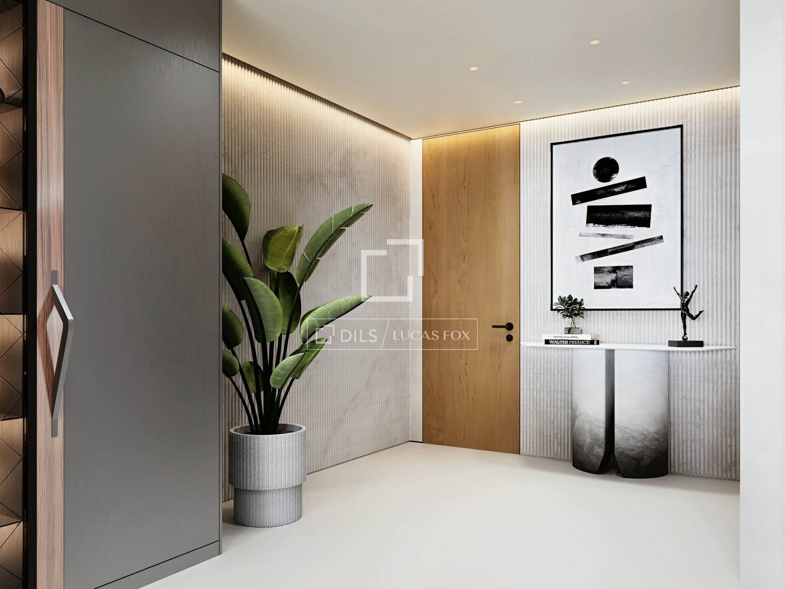 - Plats för ett stort bord och en skulptur från Bentley Home.