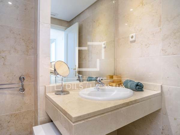 Kliv ut på den rymliga terrassen på 14 m² och njut av panoramautsikten, en ovanlig njutning i denna prisklass. Inuti är lägenheten vackert möblerad i elegant bohemisk stil av den välkända designern Rosalia Olvera, vilket skapar en välkomnande men sofistikerad atmosfär. Köket är en riktig höjdare, utformat av Nova Kitchen Concept, med en central köksö och exklusiva Pando-apparater, perfekta för både avslappnade frukostar och kvällsunderhållning.