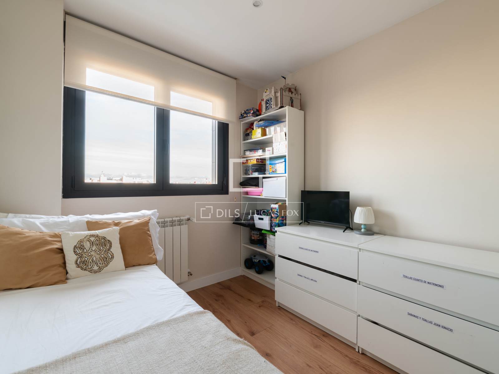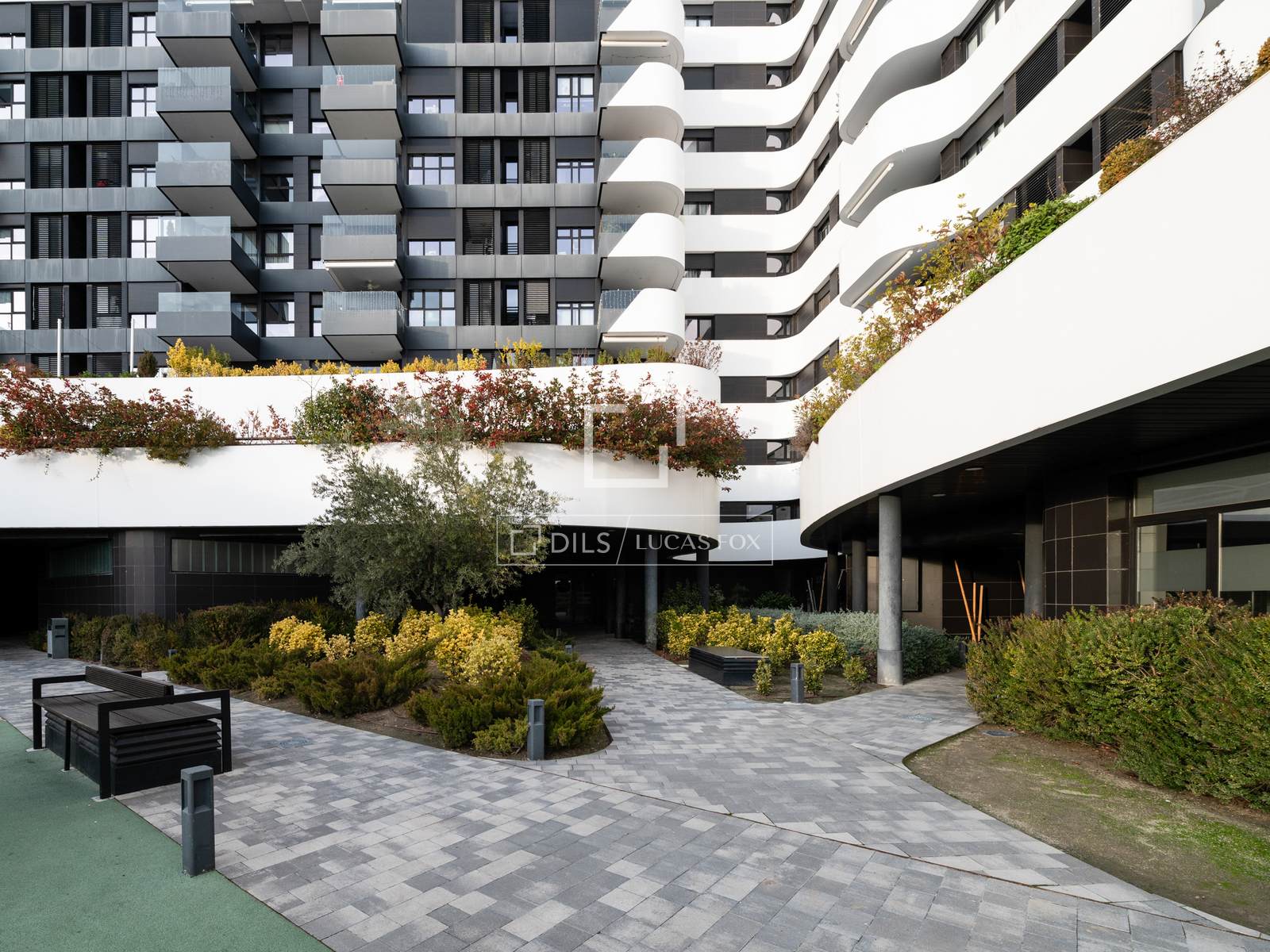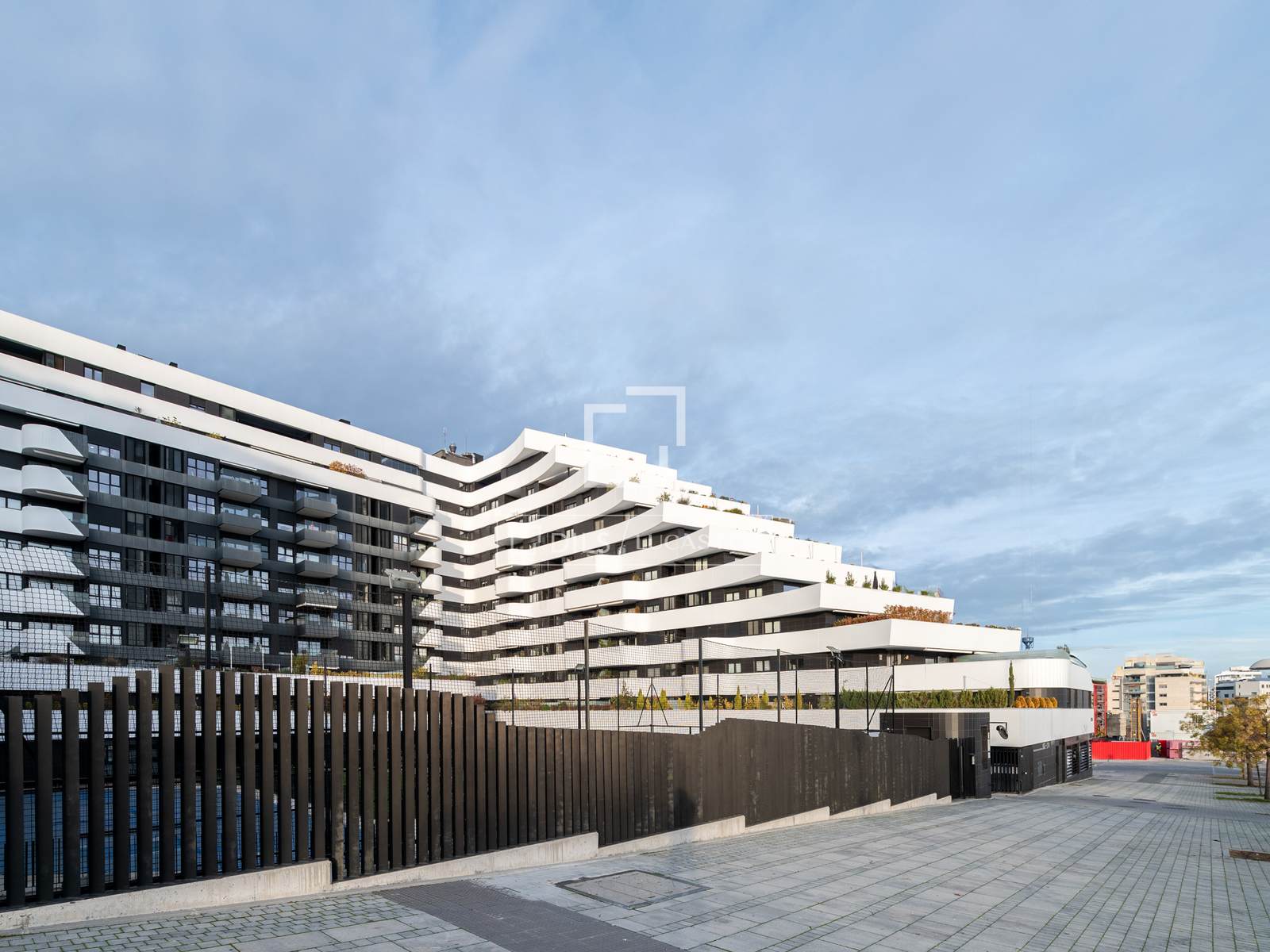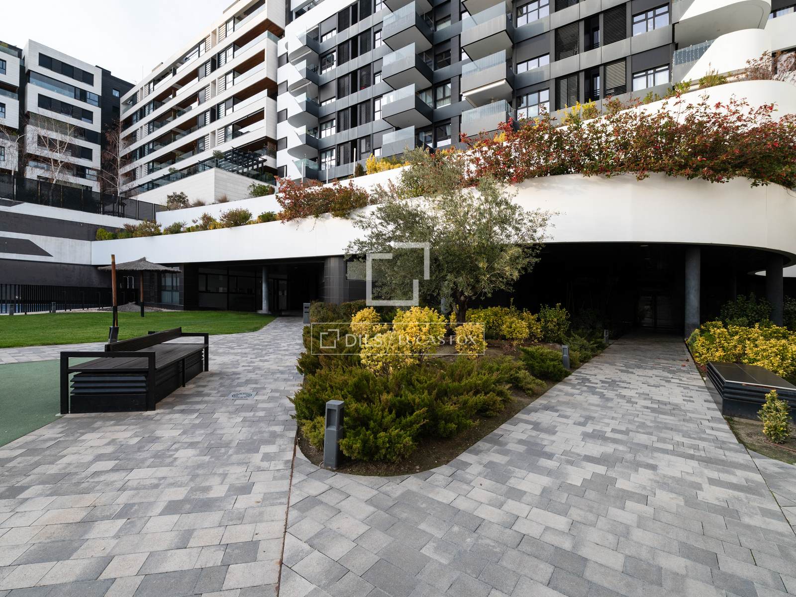 Detta bostadskomplex, byggt 2017, erbjuder alla nödvändiga bekvämligheter, inklusive concierge-service dygnet runt, ett gym, en pool, en lekplats och ett allrum. Beläget i det livliga Valdebebas-området, bara några steg från Quirónsalud-sjukhuset, restauranger, fritidsanläggningar och Valdebebas-parken, där du kan njuta av sportanläggningar, lekplatser och långa gång- och cykelvägar.