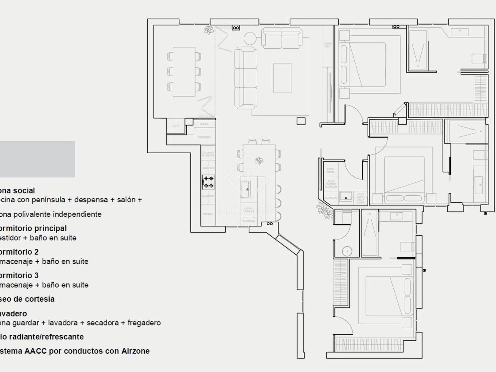 Termisk komfort garanteras året runt genom ett strålnings-/kylsystem och ett kanaliserat luftkonditioneringssystem med Airzone-teknik, vilket möjliggör reglering av rumstemperaturen, vilket förbättrar energieffektiviteten och de boendes välbefinnande.