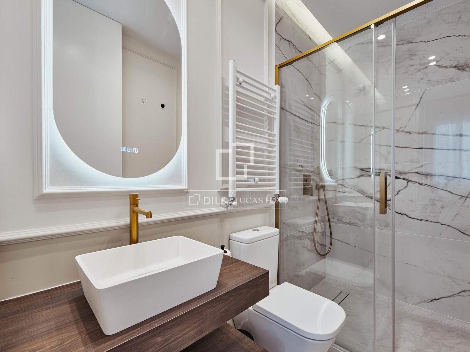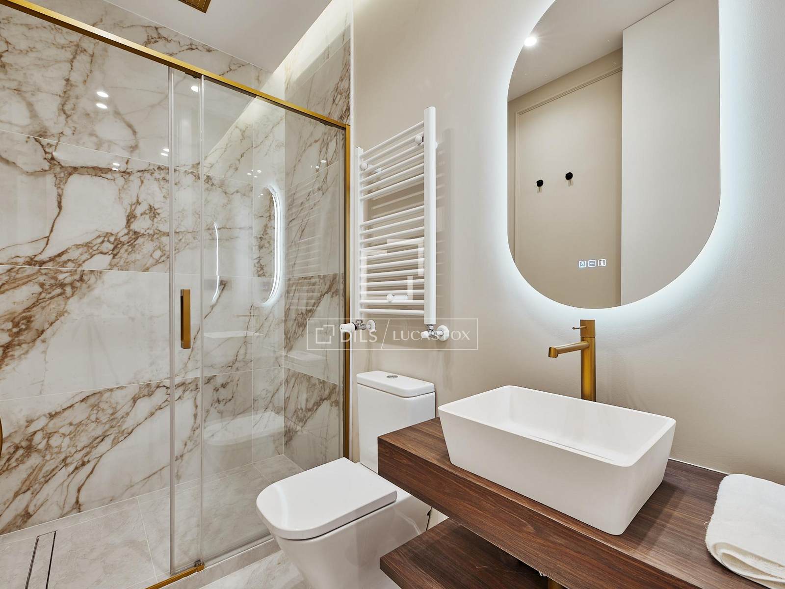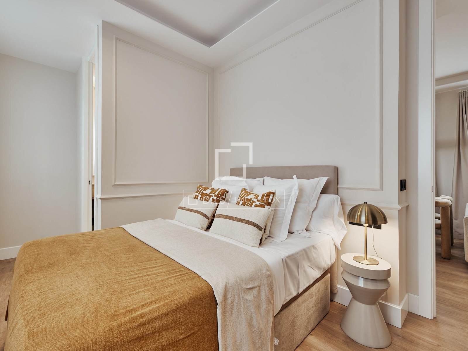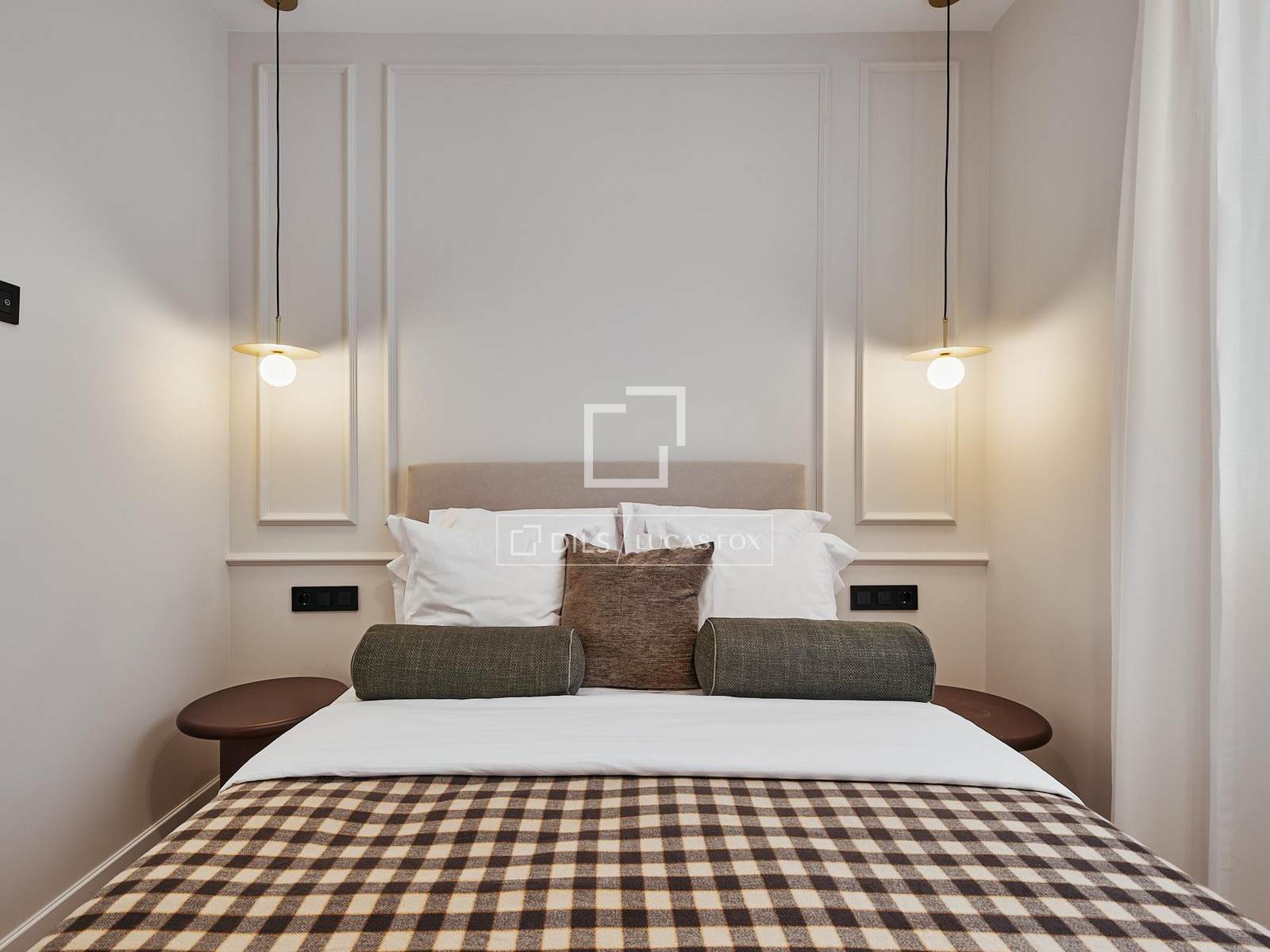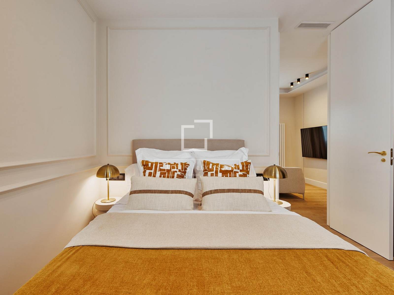Lägenheten ligger på femte våningen i en byggnad med hiss och har en yta på 66 m². Den har totalrenoverats enligt ett arkitekt- och designprojekt av den välrenommerade studion Arctempus, vilket har resulterat i ett modernt, funktionellt och elegant utrymme. Lägenheten har två dubbelrum och två kompletta badrum, samt ett väldesignat vardagsrum med vardagsrum, matsal och fullt utrustat kök.