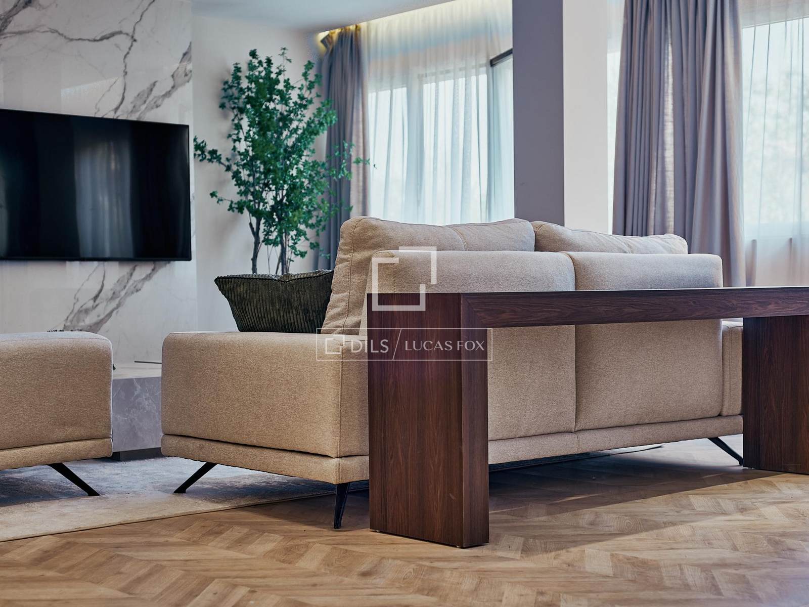 Lägenheten har tre rymliga dubbelrum och tre kompletta badrum, plus en gästtoalett. Vardagsrummet erbjuder ett rymligt vardagsrum med matplats i anslutning till ett fullt utrustat, modernt kök, utformat för att integreras sömlöst med hemmets sociala utrymme.