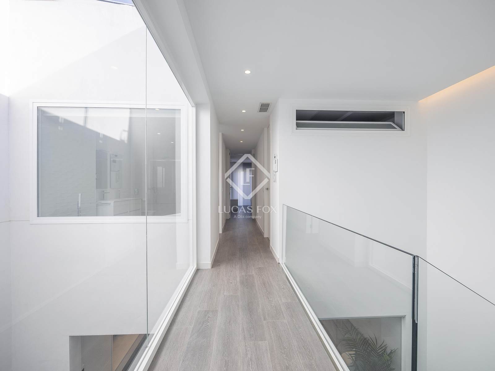 Huset har en rymlig entréhall som leder till en elegant designtrappa med glastrappor, vilket ger en känsla av rymd och naturligt ljus till hela hemmet. Det består av fyra sovrum (två dubbelrum, ett med eget badrum) och totalt fyra kompletta badrum, alla färdigställda med hög standard.