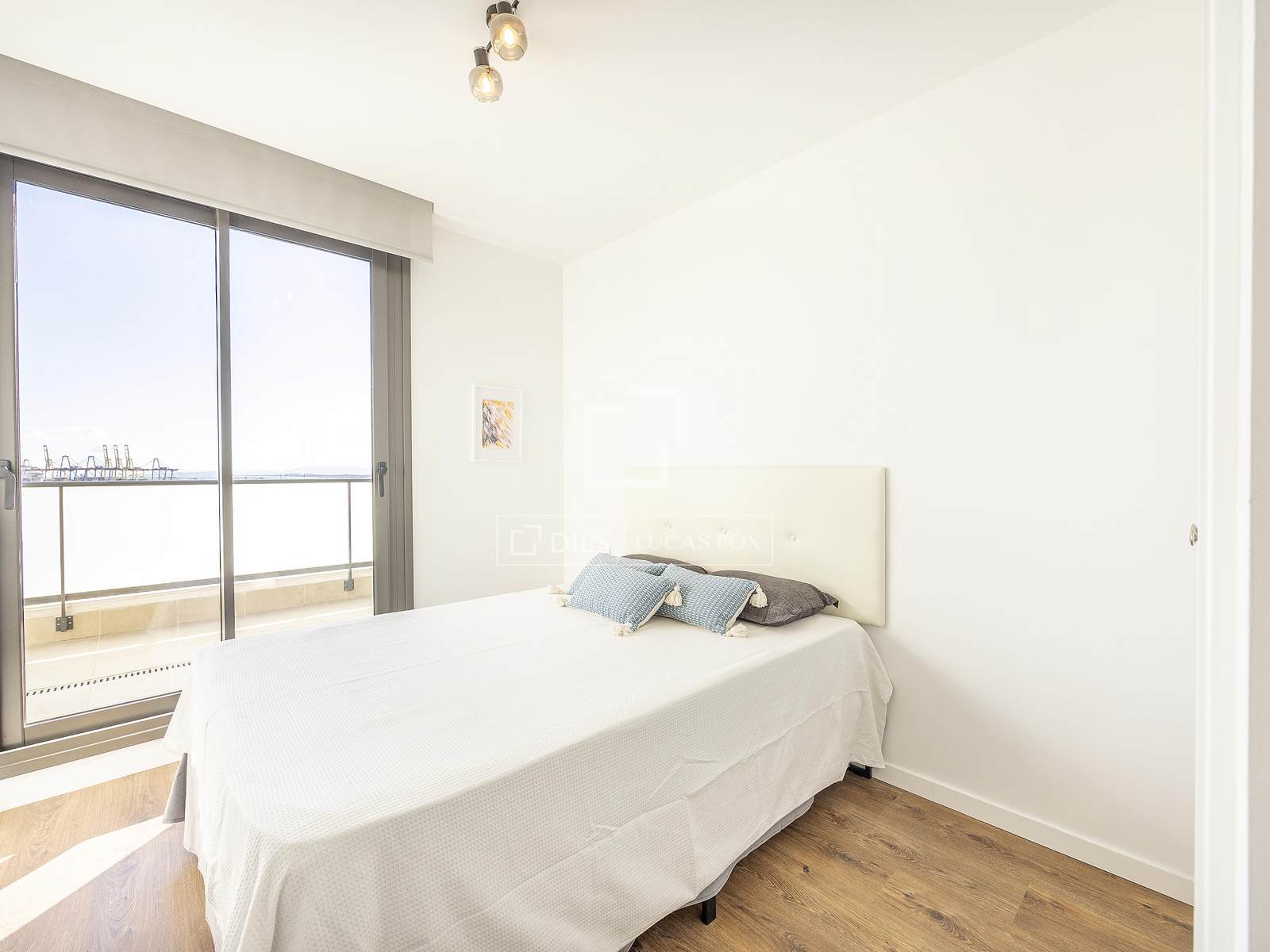Dess ideala sydostliga läge garanterar solsken hela dagen och erbjuder fri utsikt över staden Valencia, naturparken El Saler och hamnen. Byggd 2023 och helt ny, levereras den fullt möblerad, utrustad och inflyttningsklar (nyckelfärdig).