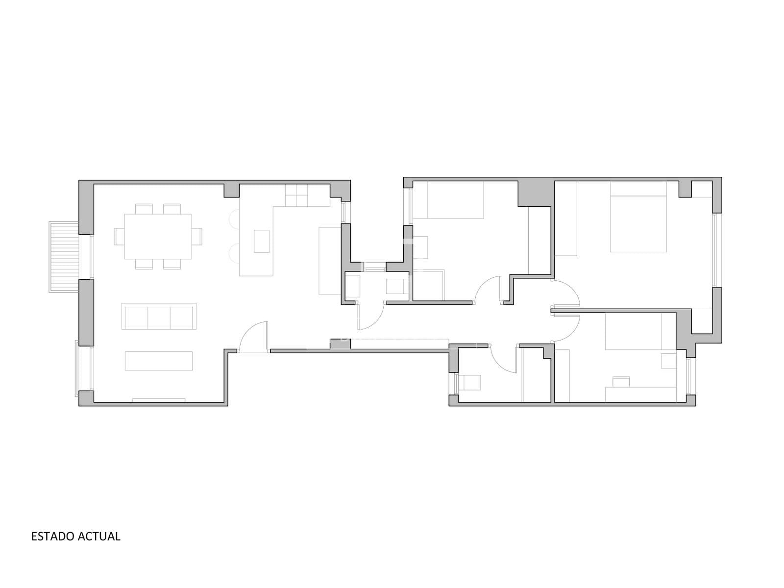 Helt renoverad lägenhet, med 3 dubbelrum, 2 badrum och en toalett till salu i centrum av stadsdelen Ruzafa, Valencia.