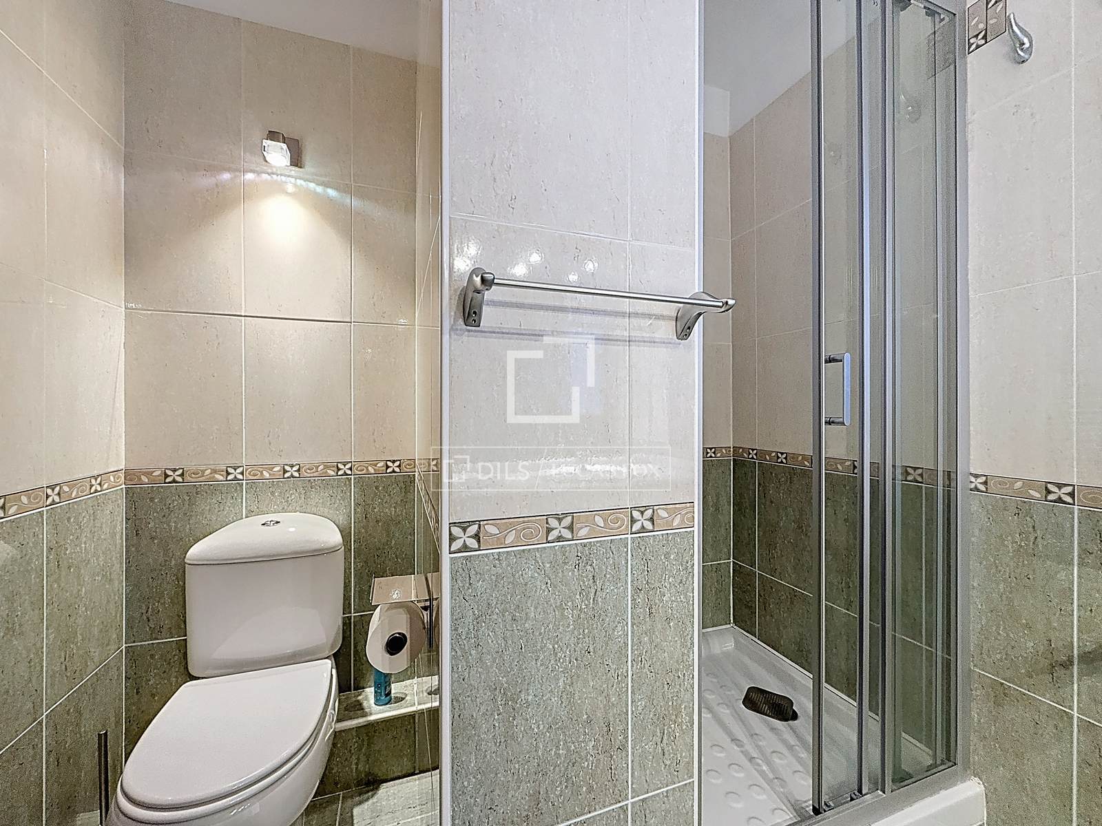 På första våningen finns två rymliga sovrum, varav ett med tillgång till en terrass, samt ett komplett badrum med dusch som betjänar denna våning.