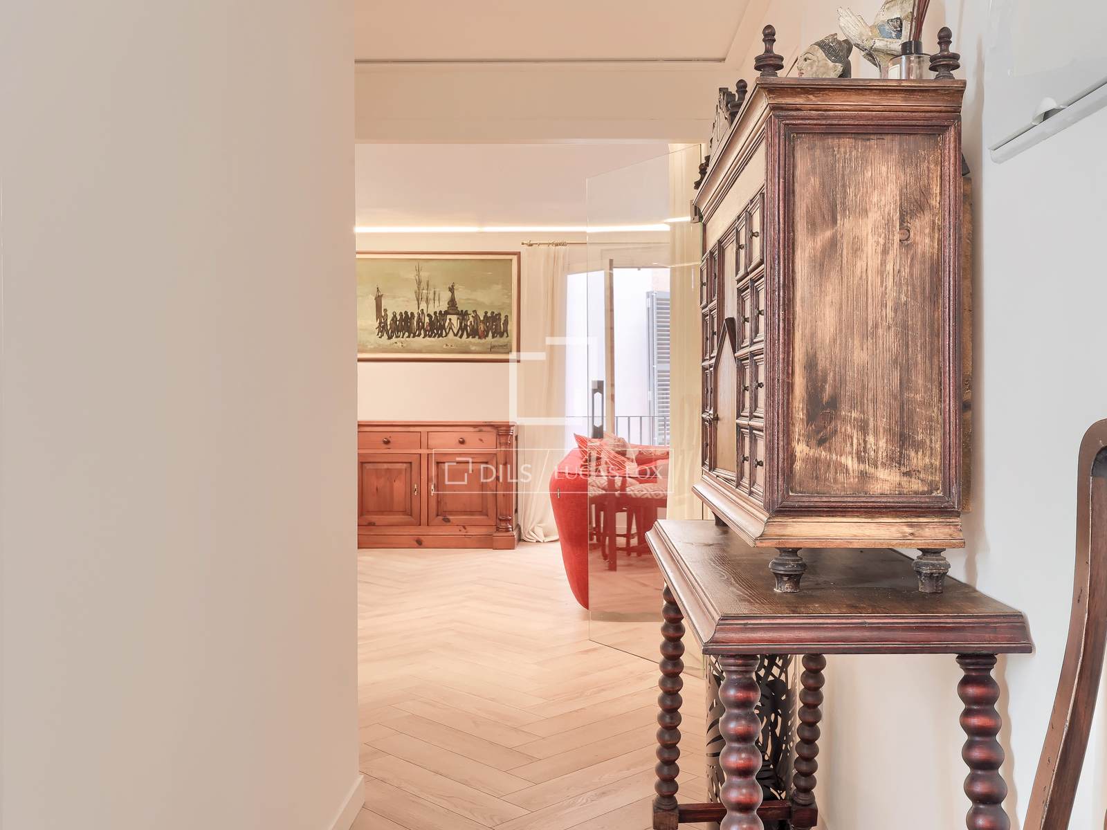 Lägenheten erbjuds fullt möblerad och kombinerar funktionalitet med diskret elegans. En privat parkeringsplats ingår, en sällsynt och värdefull tillgång i centrala Palma.