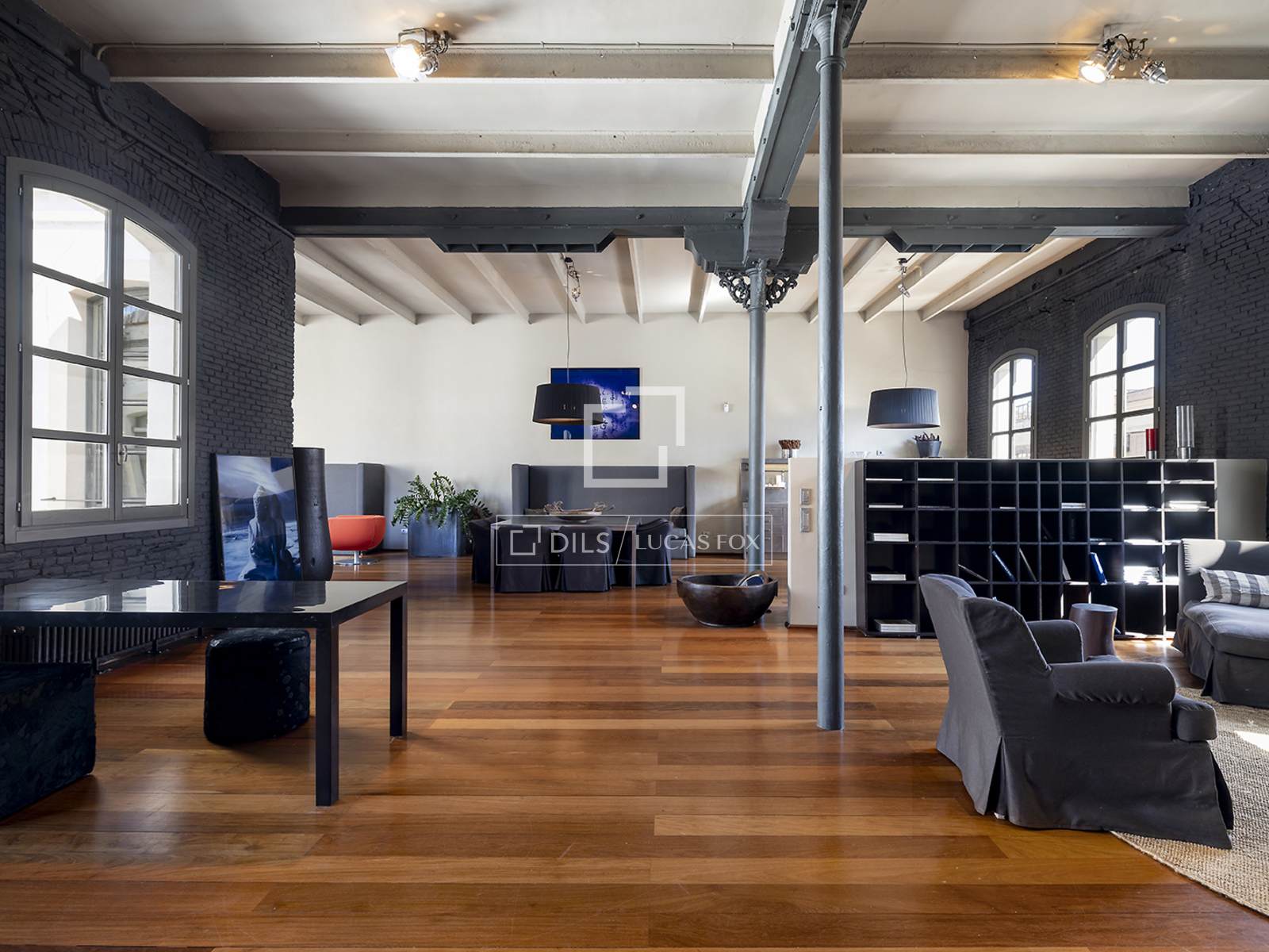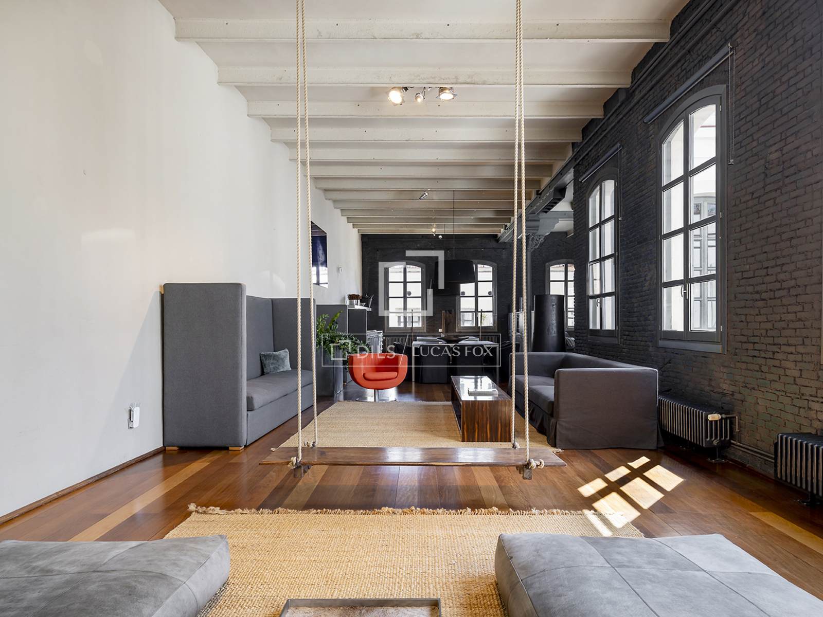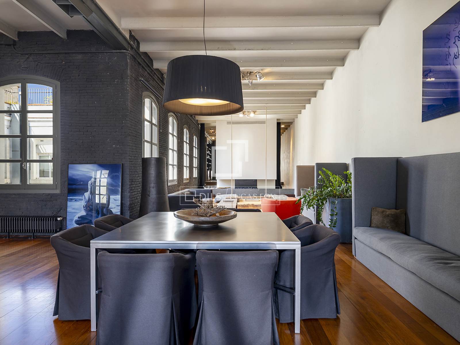Hela fastigheten har utformats med högkvalitativa material, med framhävning av arkitektoniska element som järnpelare och stora loftfönster som ger karaktär och personlighet till utrymmet.