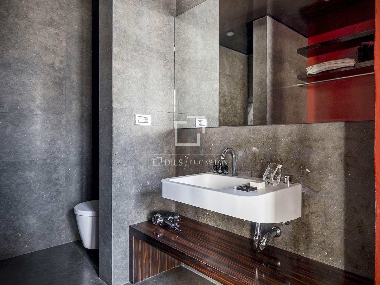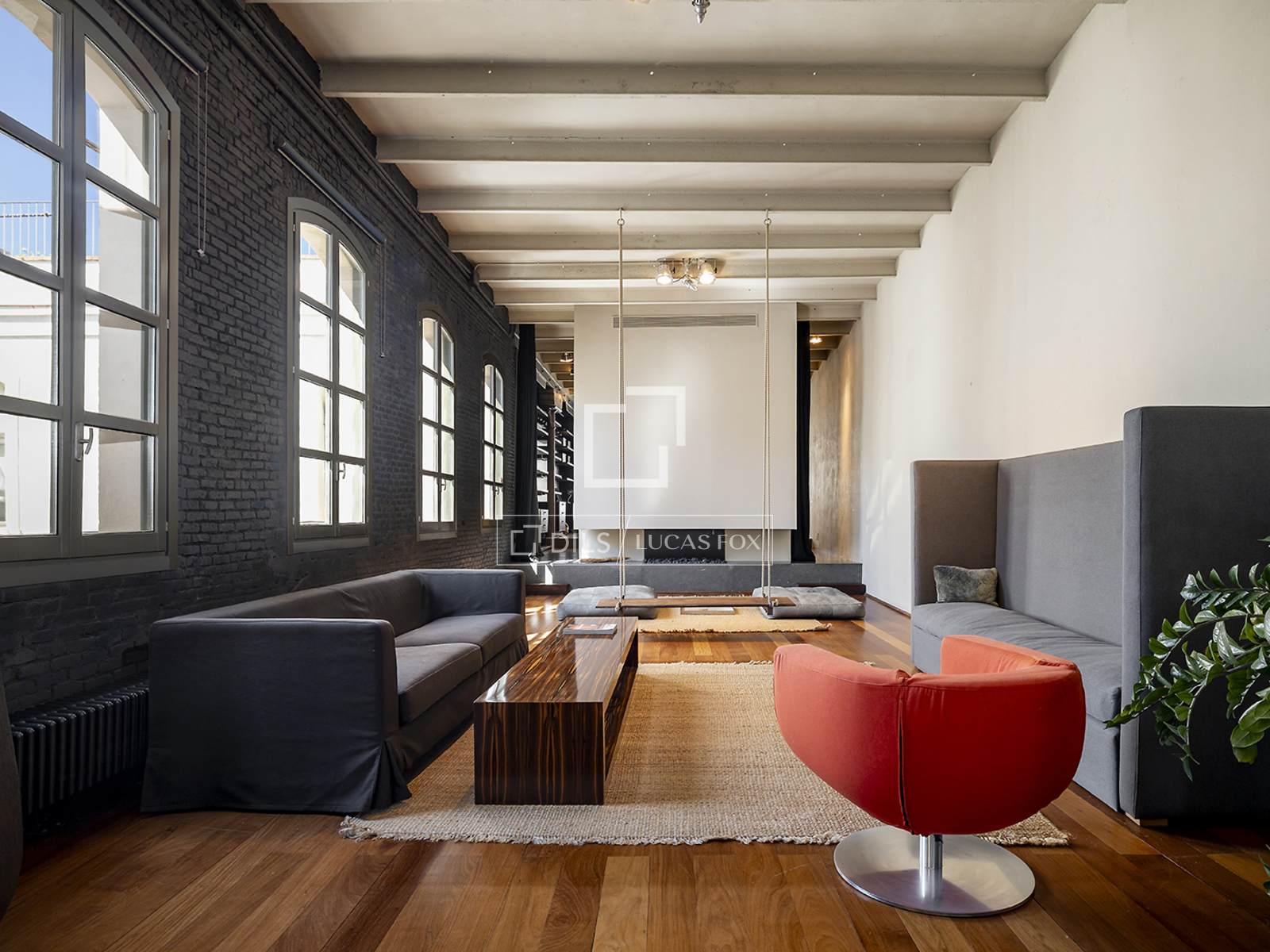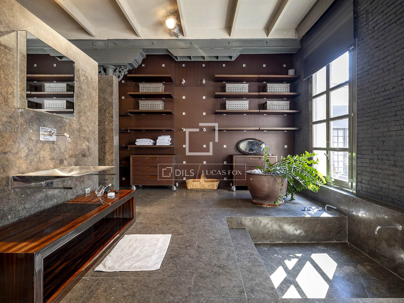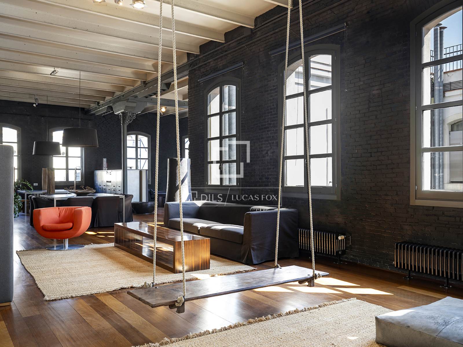 Hela fastigheten har utformats med högkvalitativa material, med framhävning av arkitektoniska element som järnpelare och stora loftfönster som ger karaktär och personlighet till utrymmet.