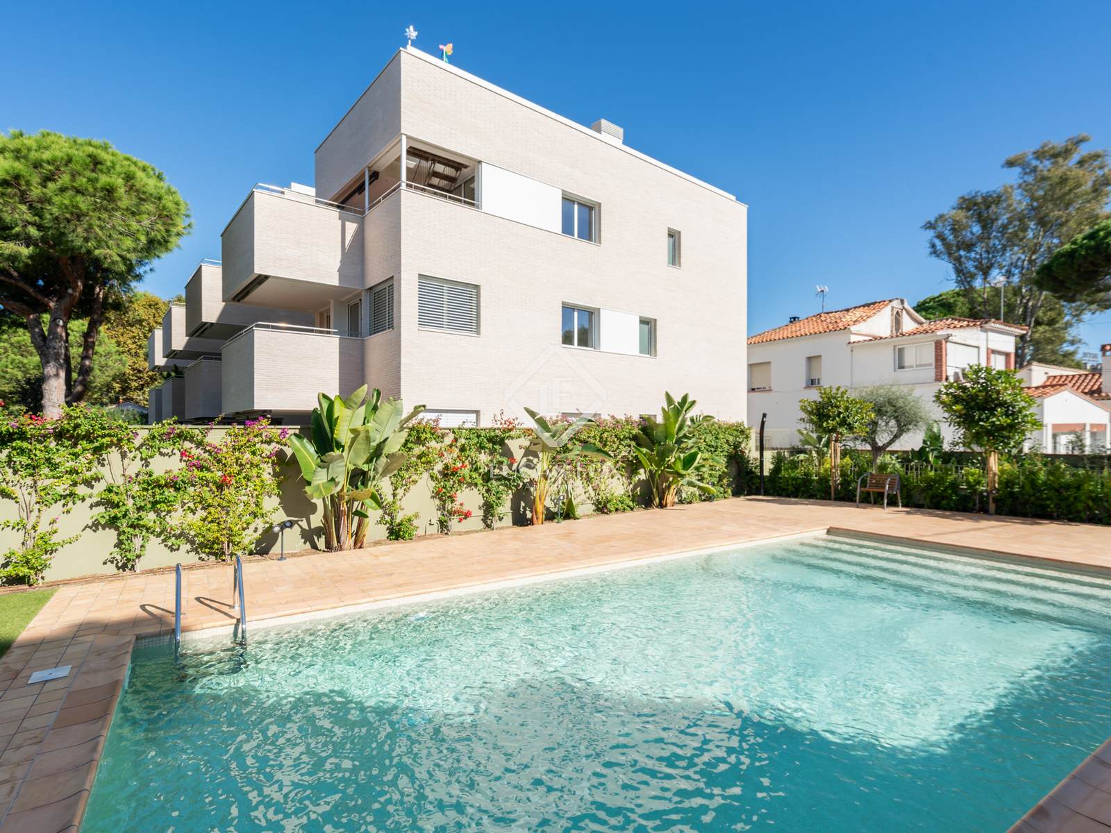 Lucas Fox presenterar denna magnifika nybyggda hörnlägenhet på första våningen, belägen i ett av de mest attraktiva områdena i Castelldefels-La Pineda, bara några minuters promenad från stranden. Eftersom det är en hörnlägenhet får bostaden gott om naturligt ljus, vilket gör den särskilt ljus och välkomnande.