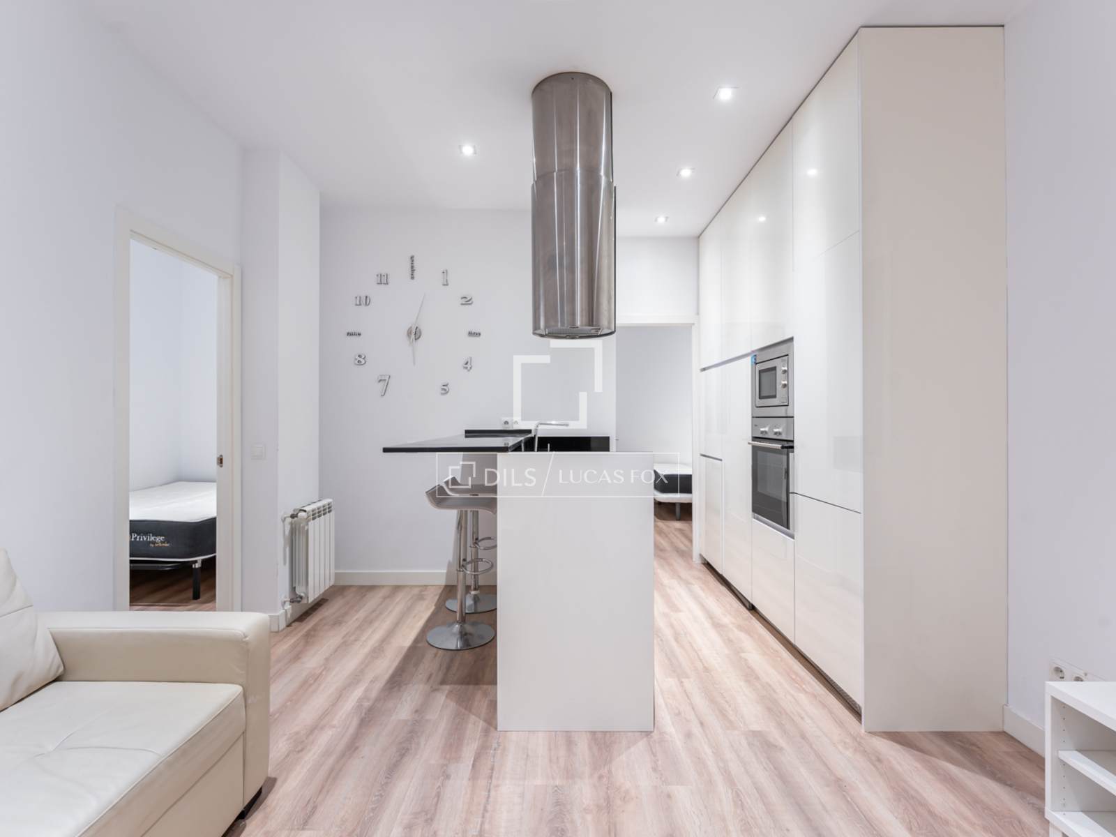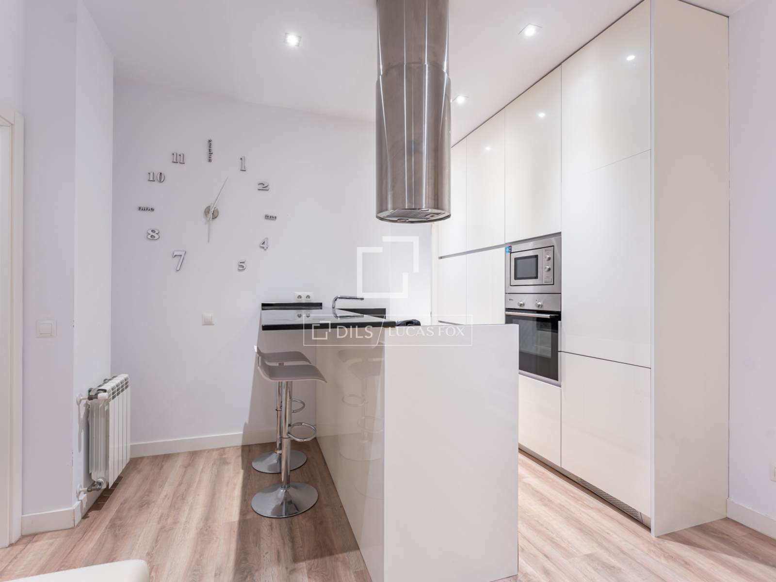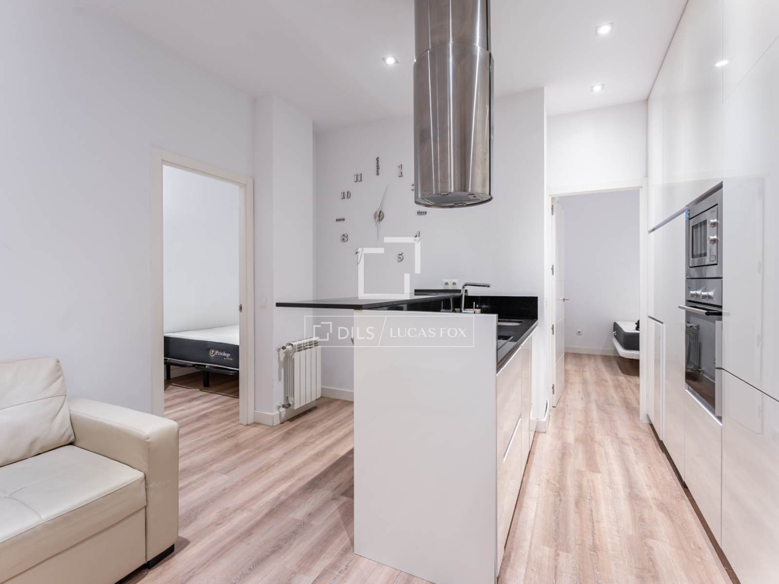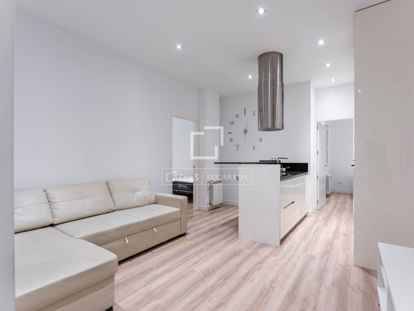 Dils Lucas Fox hyr ut en möblerad lägenhet med två sovrum och två badrum, klar för omedelbar inflyttning, tillgänglig för korta eller längre vistelser, på Ortega y Gasset-gatan.