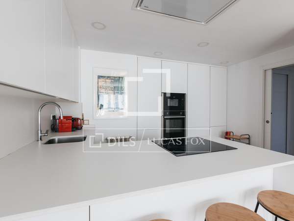 Fastigheten har en funktionell planlösning över två våningar som maximerar användningen av utrymmet: bottenvåningen och takterrasset med pool. Vardagsrummet, som består av vardagsrum, matsal, kök och terrass, vetter mot söder, medan sovrumsdelen vetter mot norr och har tillgång till en egen terrass. Det finns tre andra sovrum med två badrum och master suite. Master suiten har en klädkammare, ett rymligt badrum med en helt ny dusch och bubbelbadkar, samt ett stort takfönster som flödar in i naturligt ljus. Sovrumsdelen ansluter till huvudterrassen. Takvåningen inkluderar två parkeringsplatser.