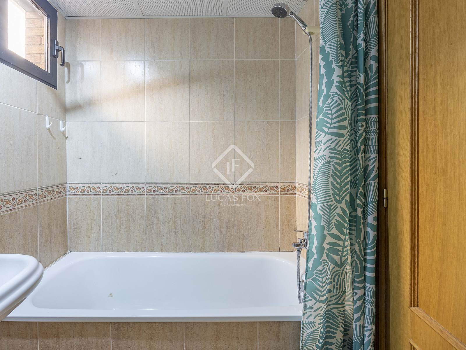 Det är fördelat på två våningar, huset nås via nedre våningen där vi hittar ett rymligt vardagsrum med matplats möblerat med en bekväm soffa, TV-hörna (med Smart-TV) och matplats för 8 middagar. Detta rum inbjuder oss till en avlång balkong med utsikt över stadsdelen Ciutat de les Arts et les Ciències (Konst- och vetenskapsstaden).