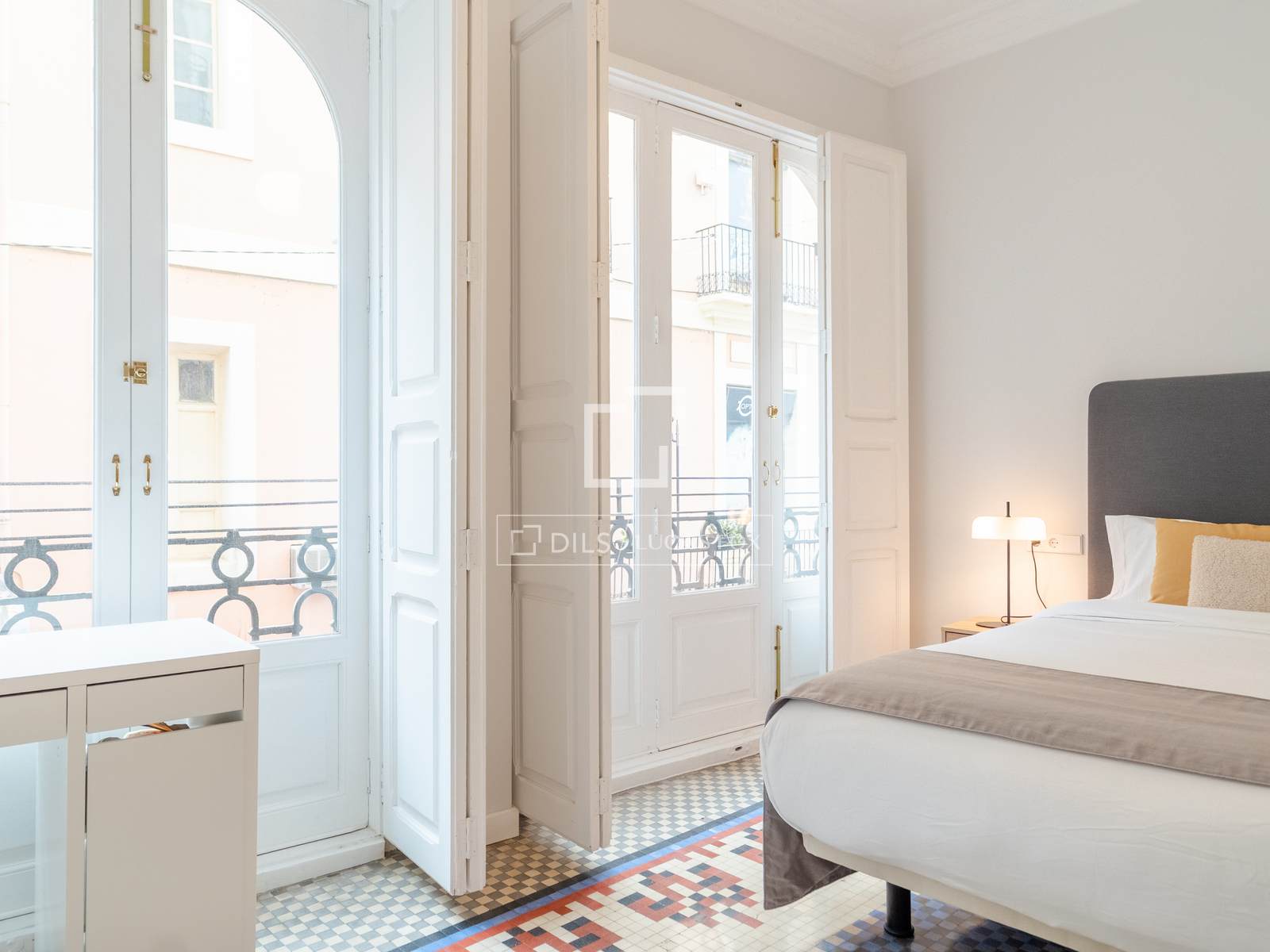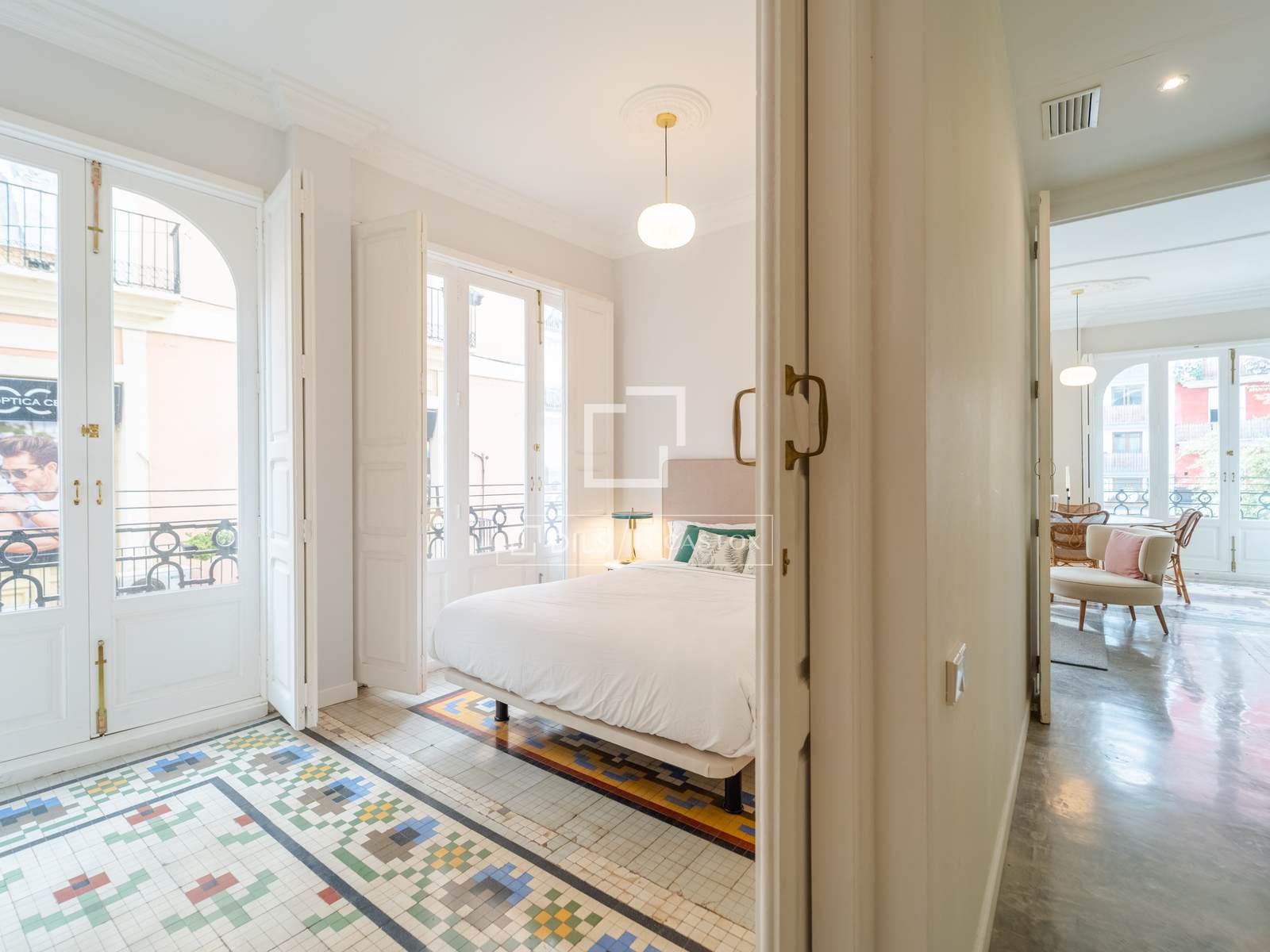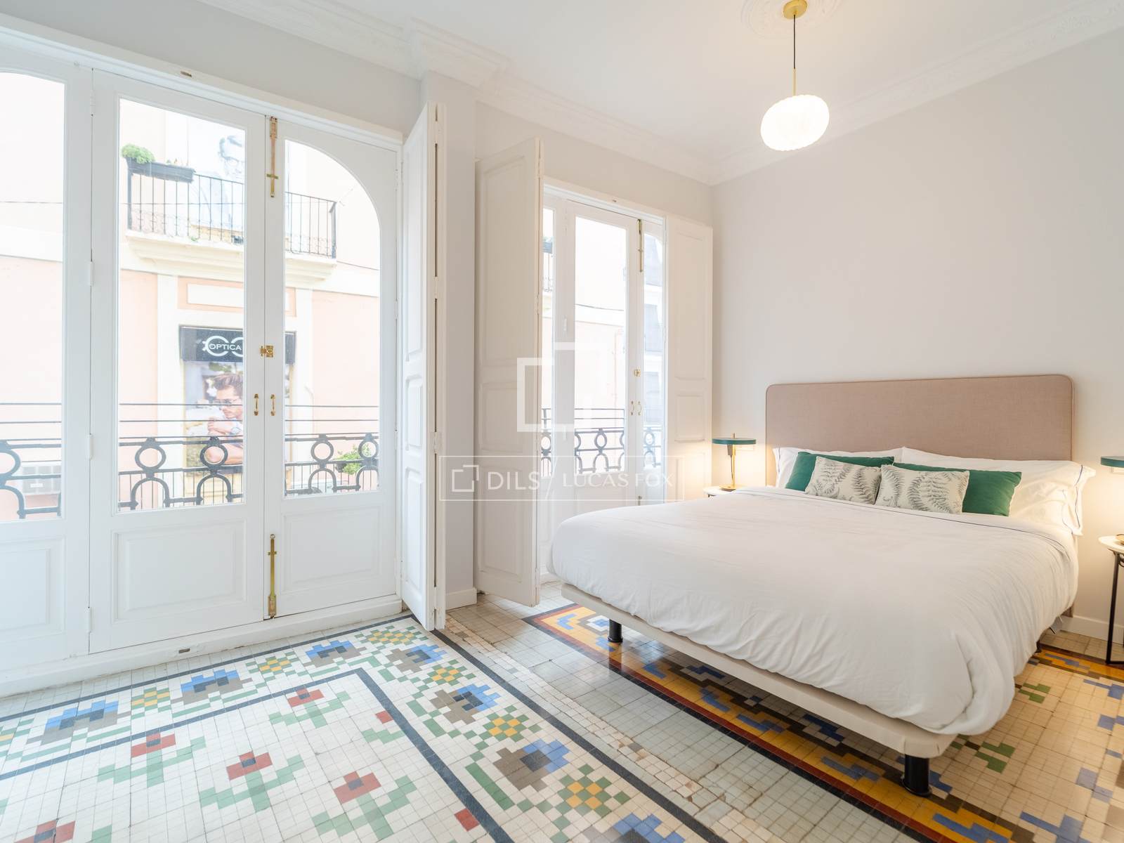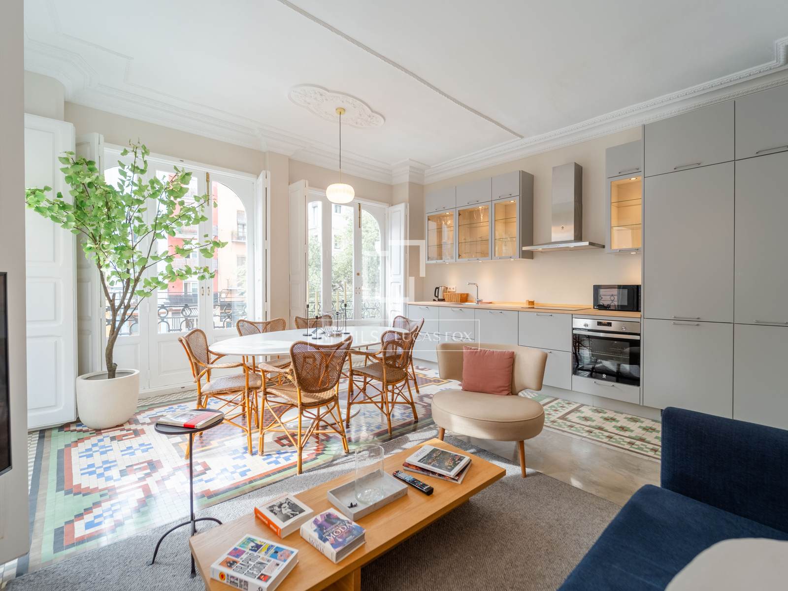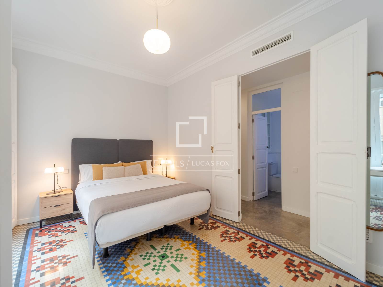 Denna exklusiva lägenhet på 100 m², belägen i hjärtat av Mercat-distriktet i Ciutat Vella, erbjuder en perfekt blandning av historisk charm och modern komfort. Fastigheten har totalrenoverats, men dess ursprungliga karaktär har bevarats, och dess unika arkitektoniska detaljer, såsom de restaurerade hydrauliska mosaikgolven och höga taken, har framhävts, vilket skapar en rymlig och elegant atmosfär.