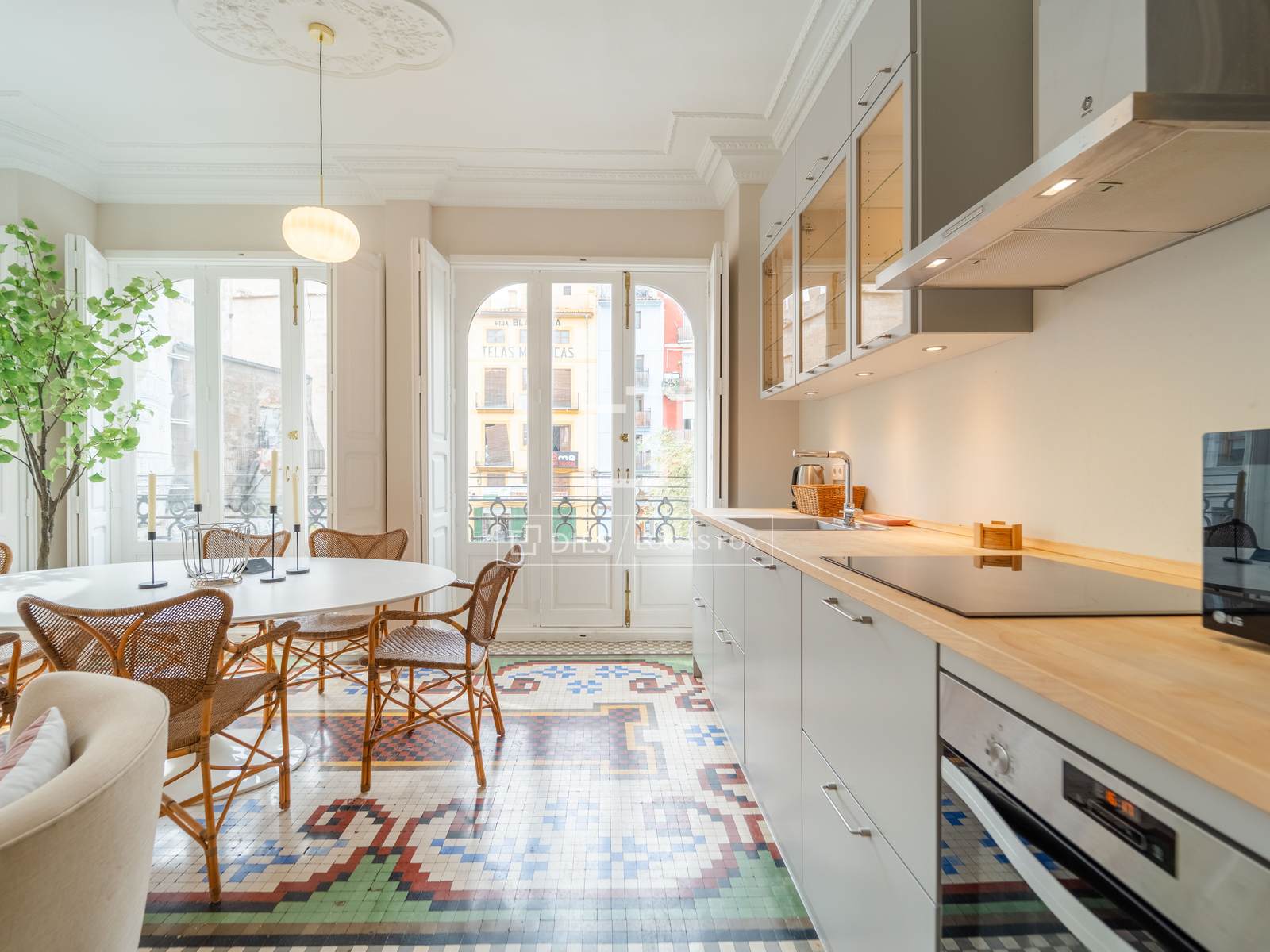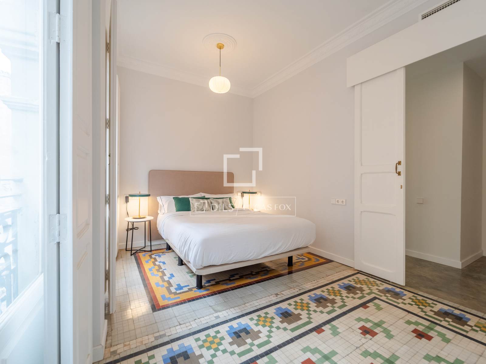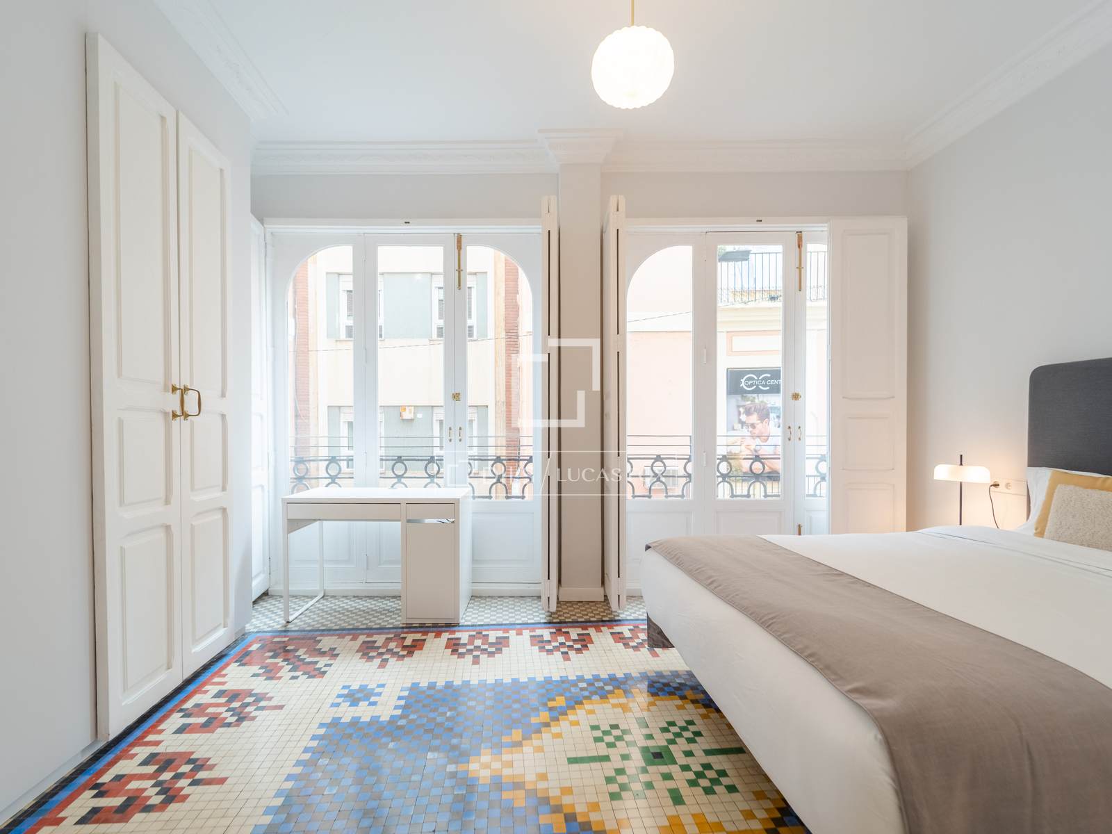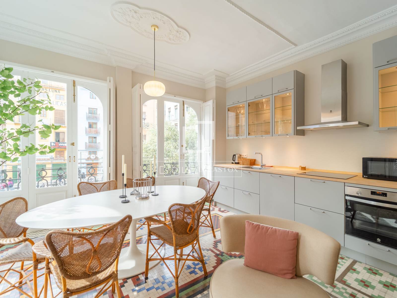 Denna exklusiva lägenhet på 100 m², belägen i hjärtat av Mercat-distriktet i Ciutat Vella, erbjuder en perfekt blandning av historisk charm och modern komfort. Fastigheten har totalrenoverats, men dess ursprungliga karaktär har bevarats, och dess unika arkitektoniska detaljer, såsom de restaurerade hydrauliska mosaikgolven och höga taken, har framhävts, vilket skapar en rymlig och elegant atmosfär.