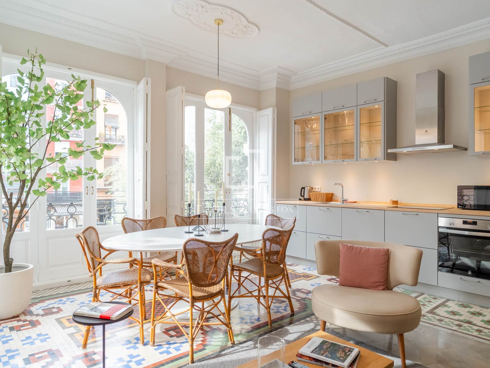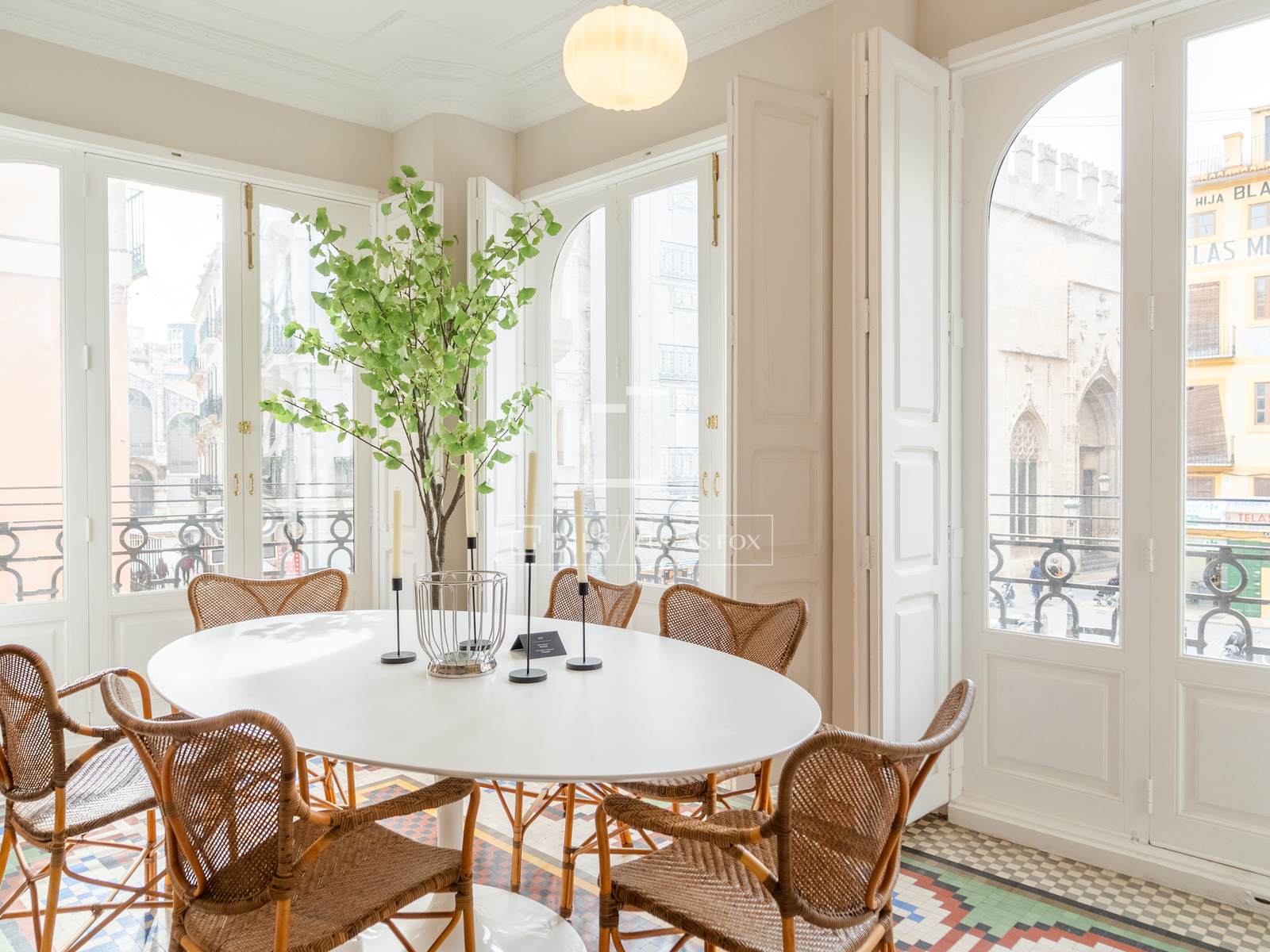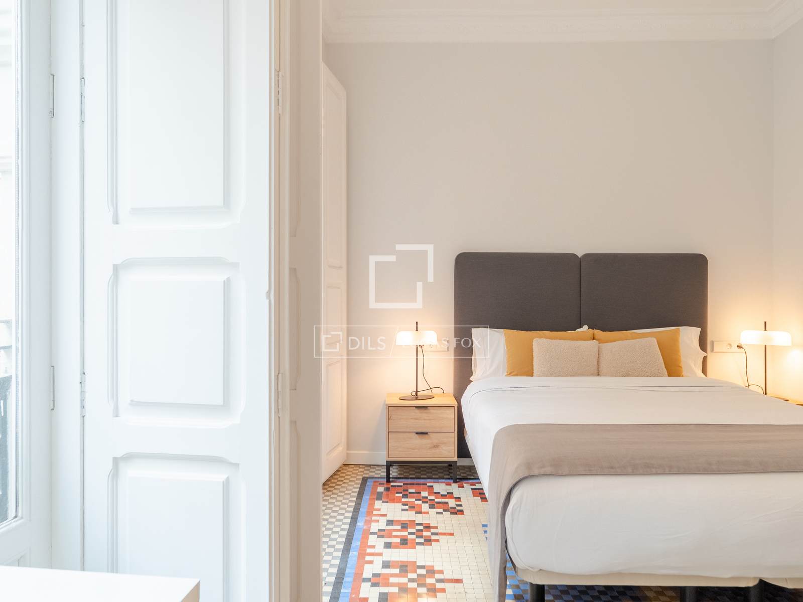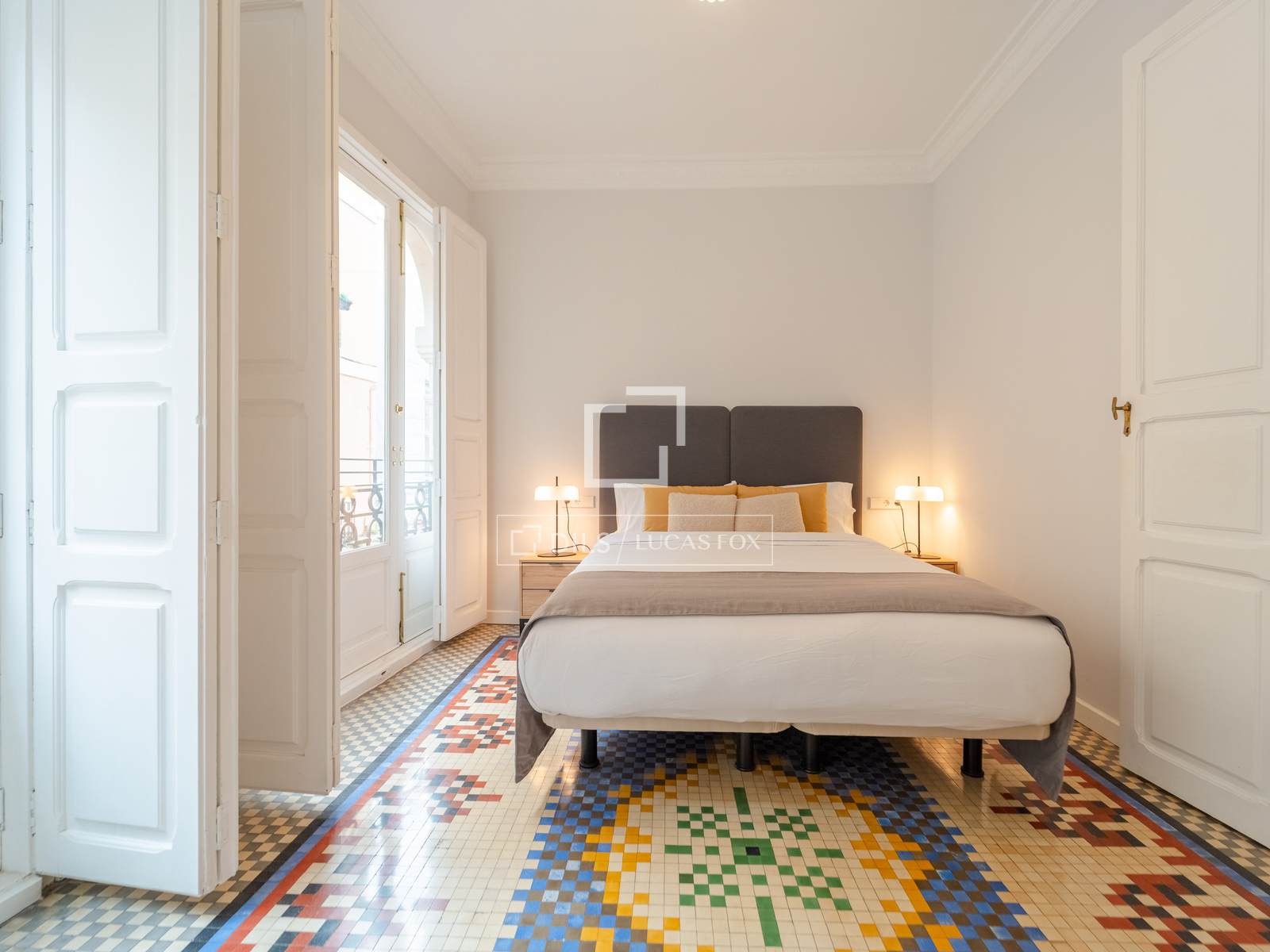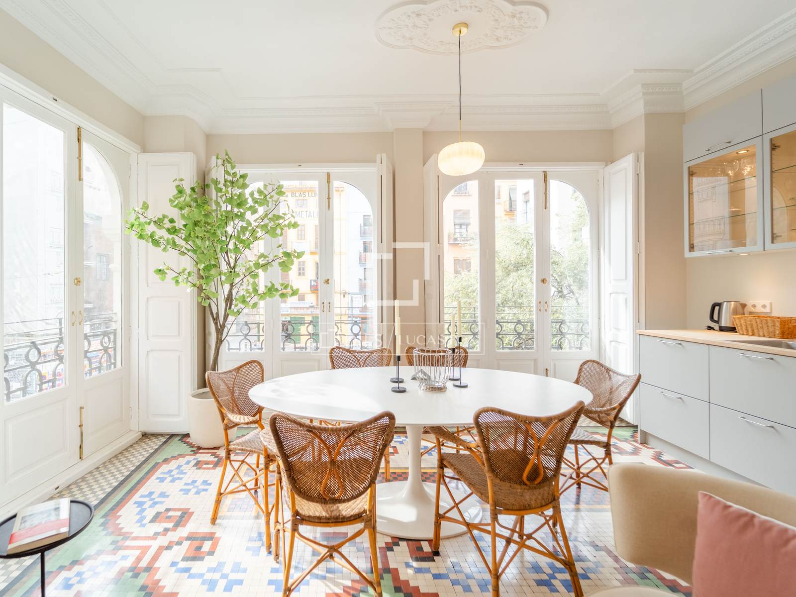 Denna exklusiva lägenhet på 100 m², belägen i hjärtat av Mercat-distriktet i Ciutat Vella, erbjuder en perfekt blandning av historisk charm och modern komfort. Fastigheten har totalrenoverats, men dess ursprungliga karaktär har bevarats, och dess unika arkitektoniska detaljer, såsom de restaurerade hydrauliska mosaikgolven och höga taken, har framhävts, vilket skapar en rymlig och elegant atmosfär.