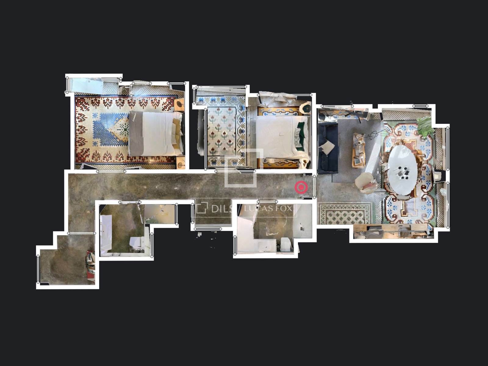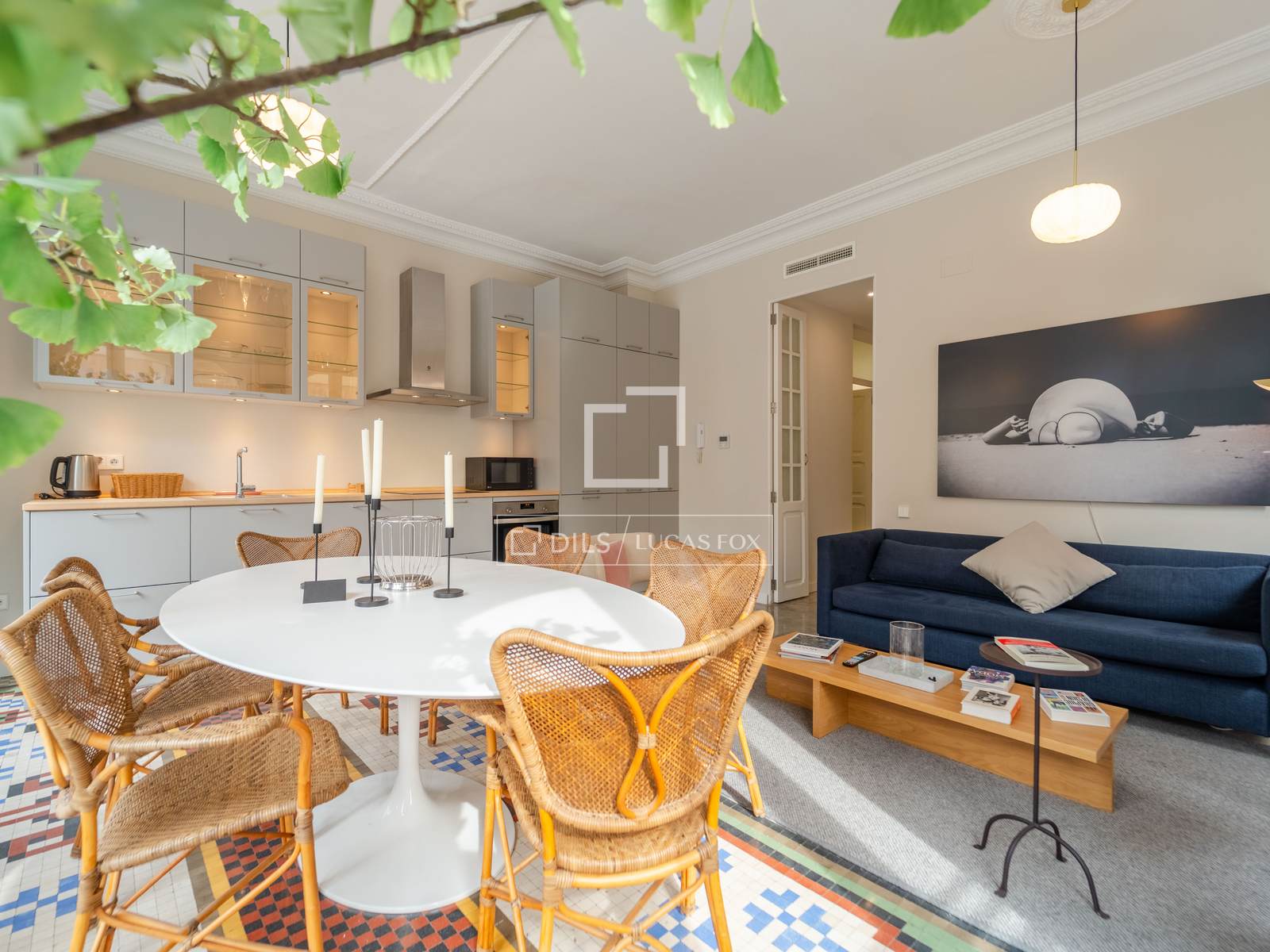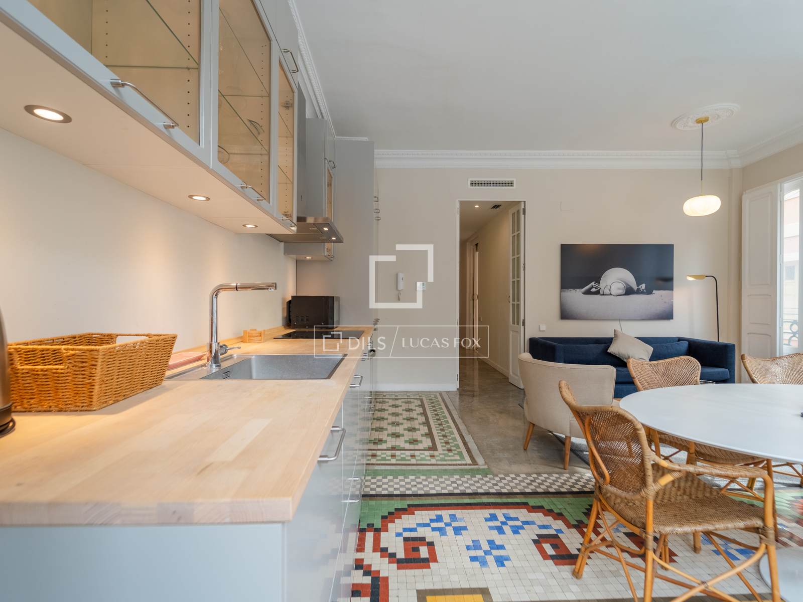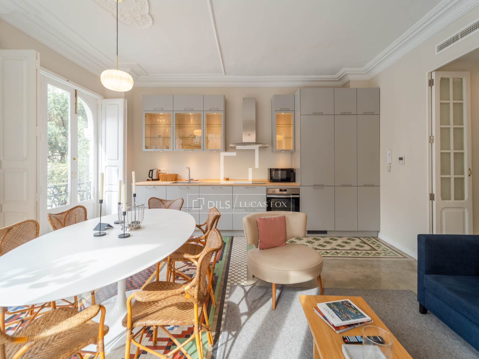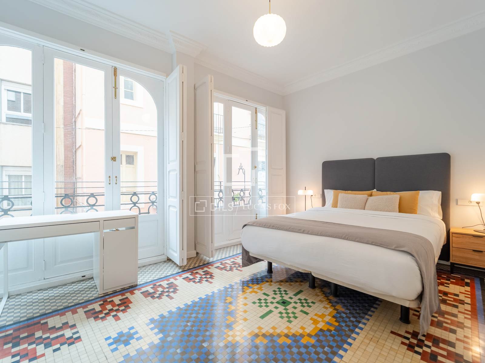 Denna exklusiva lägenhet på 100 m², belägen i hjärtat av Mercat-distriktet i Ciutat Vella, erbjuder en perfekt blandning av historisk charm och modern komfort. Fastigheten har totalrenoverats, men dess ursprungliga karaktär har bevarats, och dess unika arkitektoniska detaljer, såsom de restaurerade hydrauliska mosaikgolven och höga taken, har framhävts, vilket skapar en rymlig och elegant atmosfär.