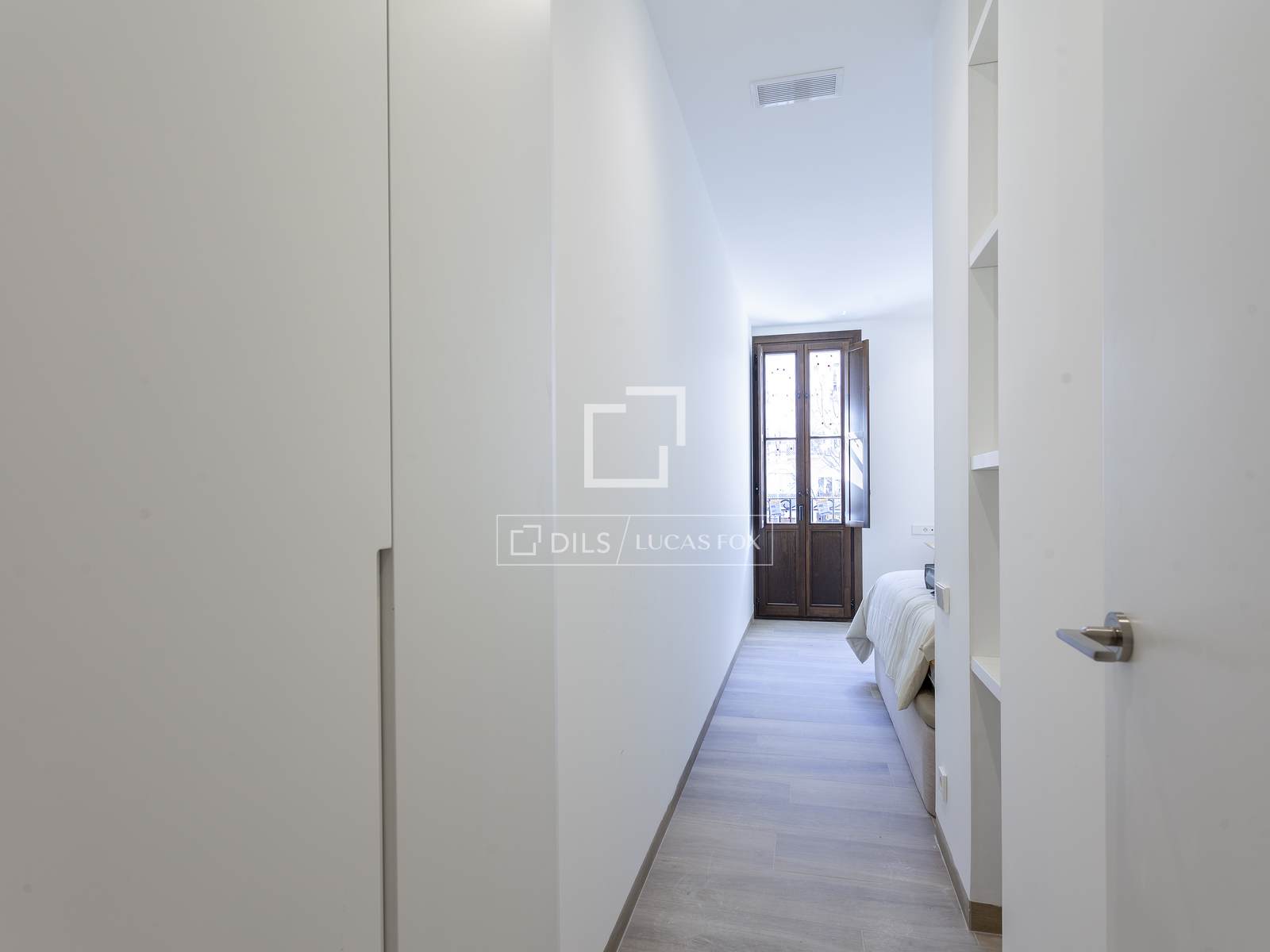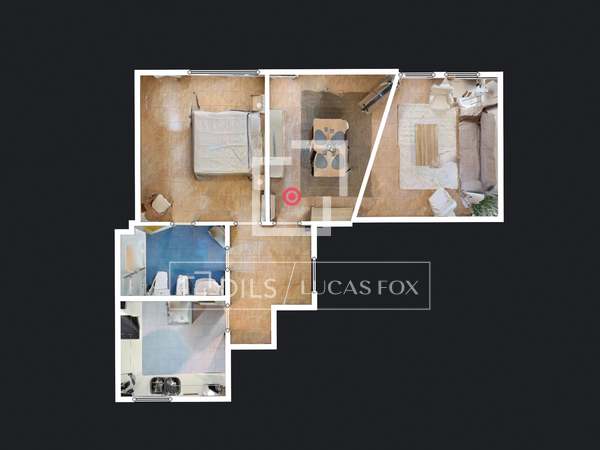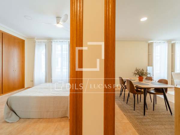 Denna exklusiva lägenhet ligger i en vacker, nybyggd modernistisk byggnad i Gran Vía-distriktet i Valencia. Den ligger mycket nära Mercado de Colón och stadens största shoppingområde, men ändå bara några steg från Turiaflodens trädgårdar, ett av stadens största grönområden.