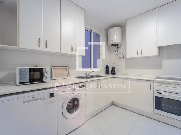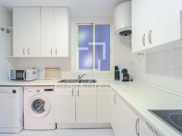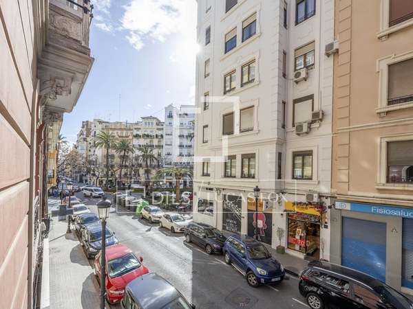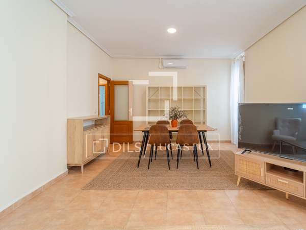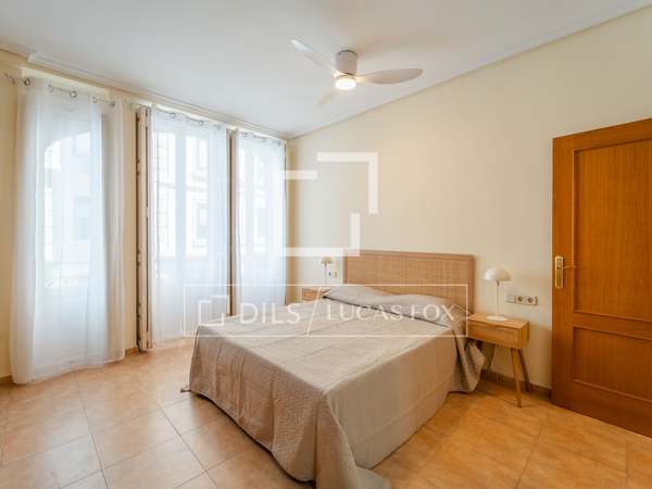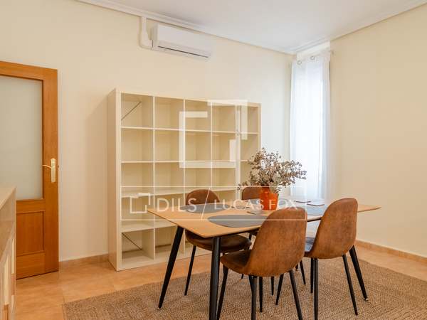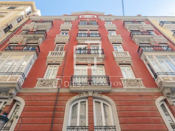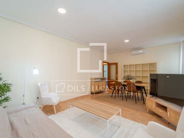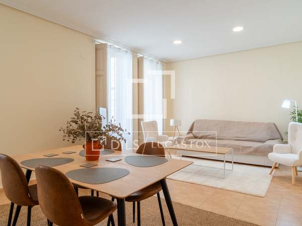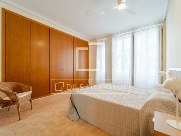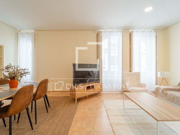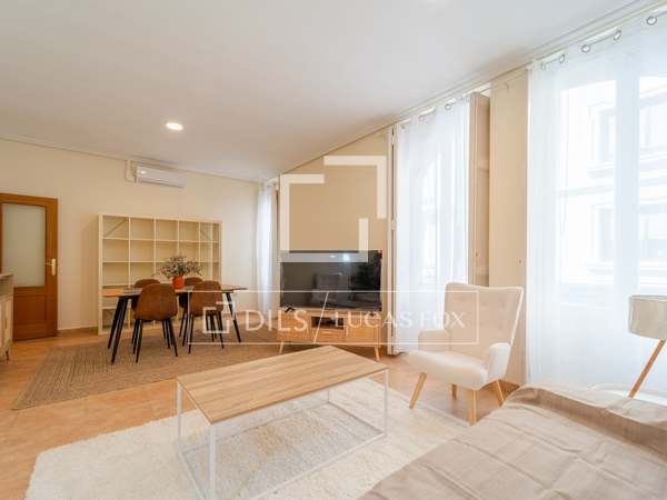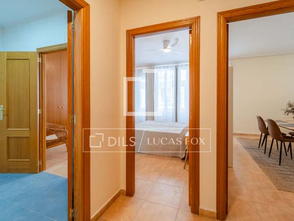 Möblerad lägenhet med designmöbler och lyxiga detaljer, med 2 sovrum och 2 badrum uthyres i en modernistisk byggnad i hjärtat av Gran Vía-området i Valencia.