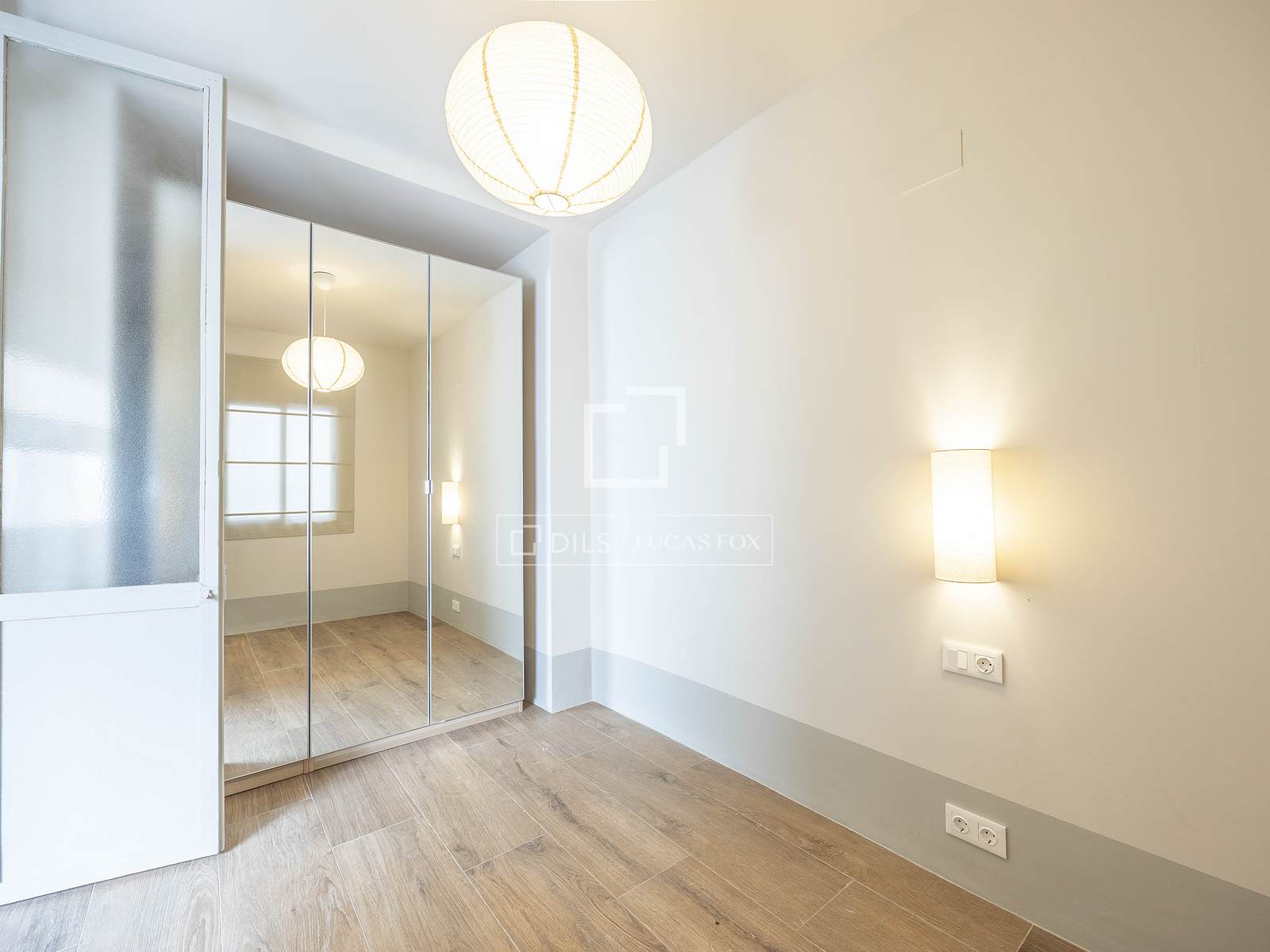 Fortsättning på nattrummet hittar vi sovrummet, också det med ett stort fönster mot fasaden och stora, fullt utrustade inbyggda garderober från golv till tak.