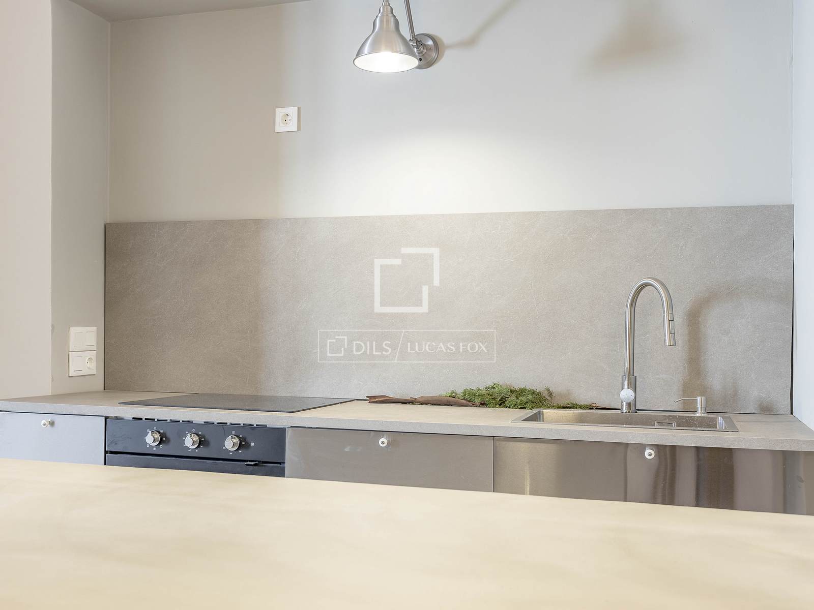 Köket är dolt i samma öppna planlösning, liksom de integrerade vitvarorna och panelerade vitvarorna.