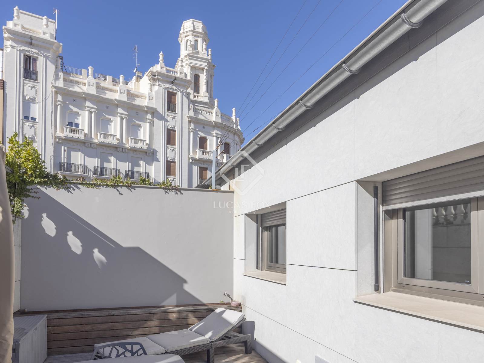 Unik exteriör och möblerad takvåning att hyra på samma torg som Valencias stadshus.